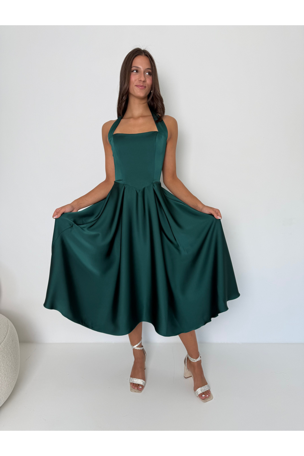 Saténové korzetové šaty CELINE MIDI smaragd