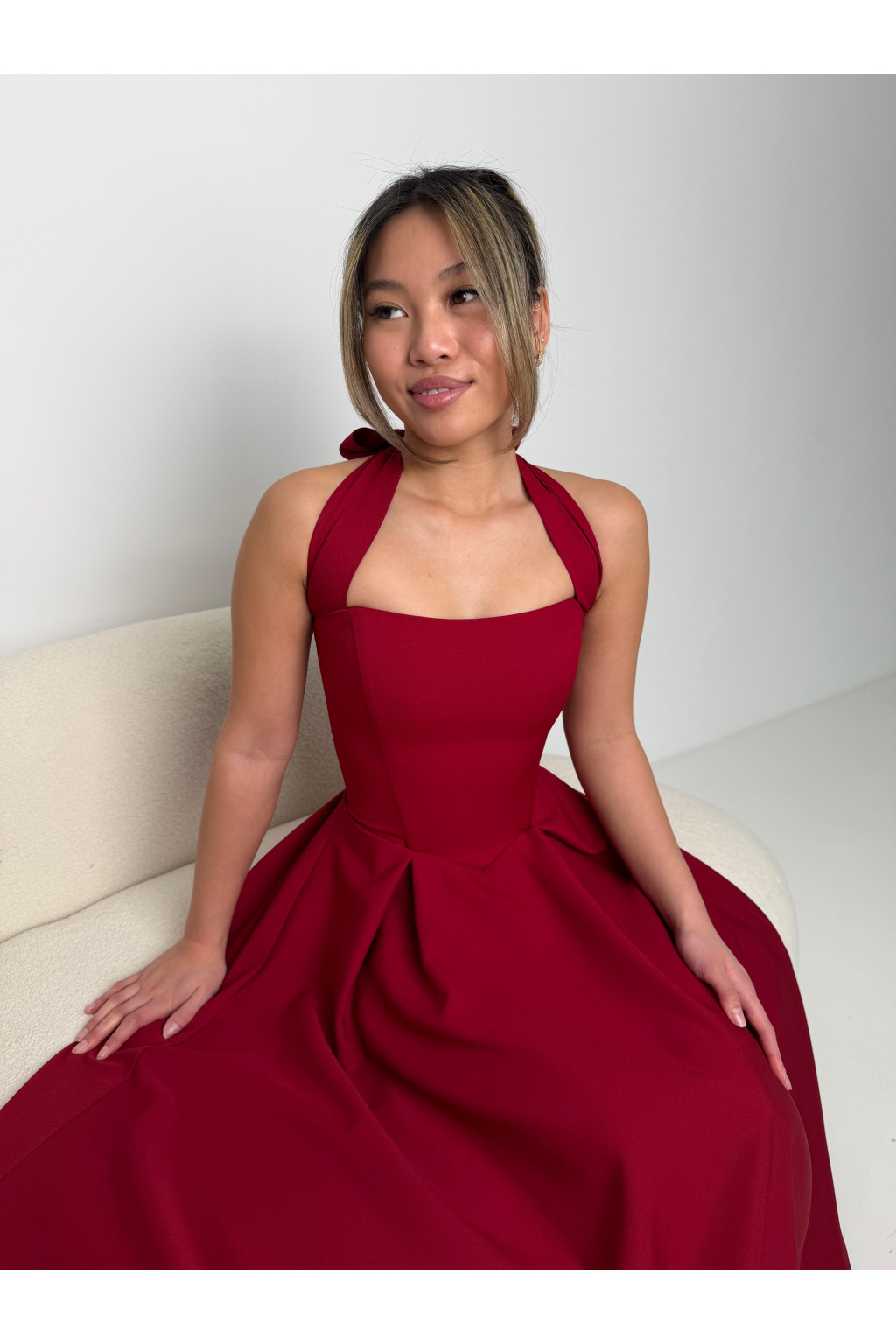 - Korzetový výstřih: Krásně tvaruje dekolt a poskytuje oporu díky integrovaným kosticím.
