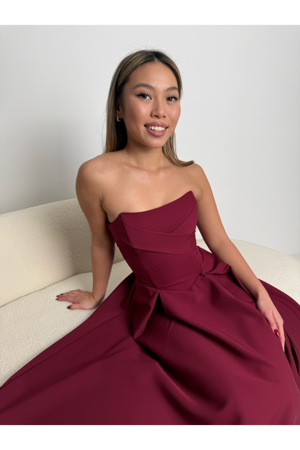 - Korzetový výstřih: Krásně tvaruje dekolt a poskytuje oporu díky integrovaným kosticím.