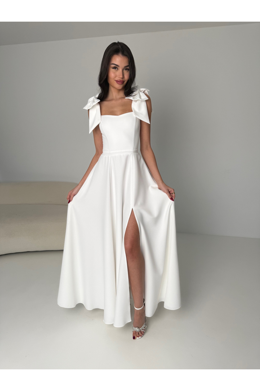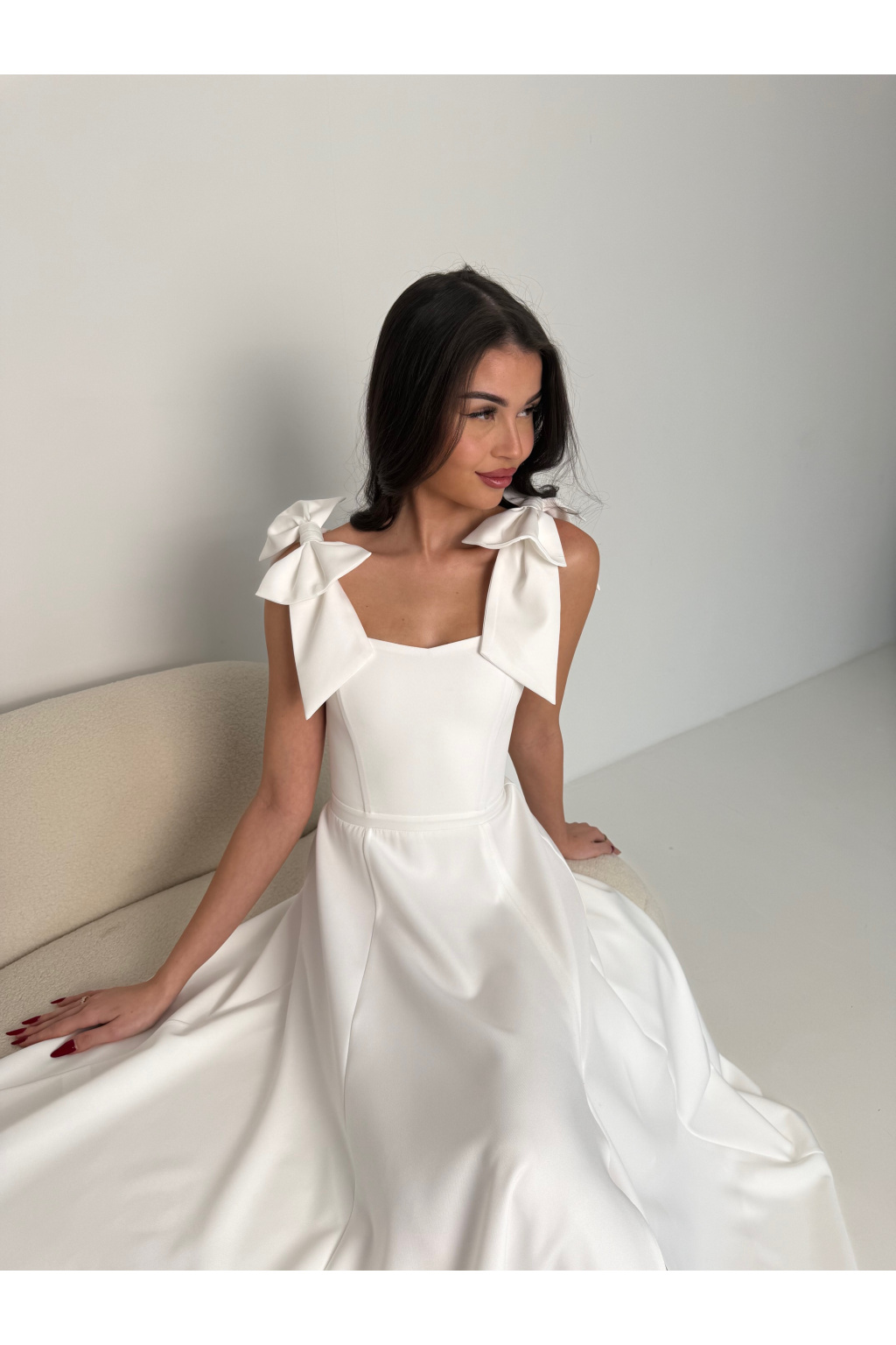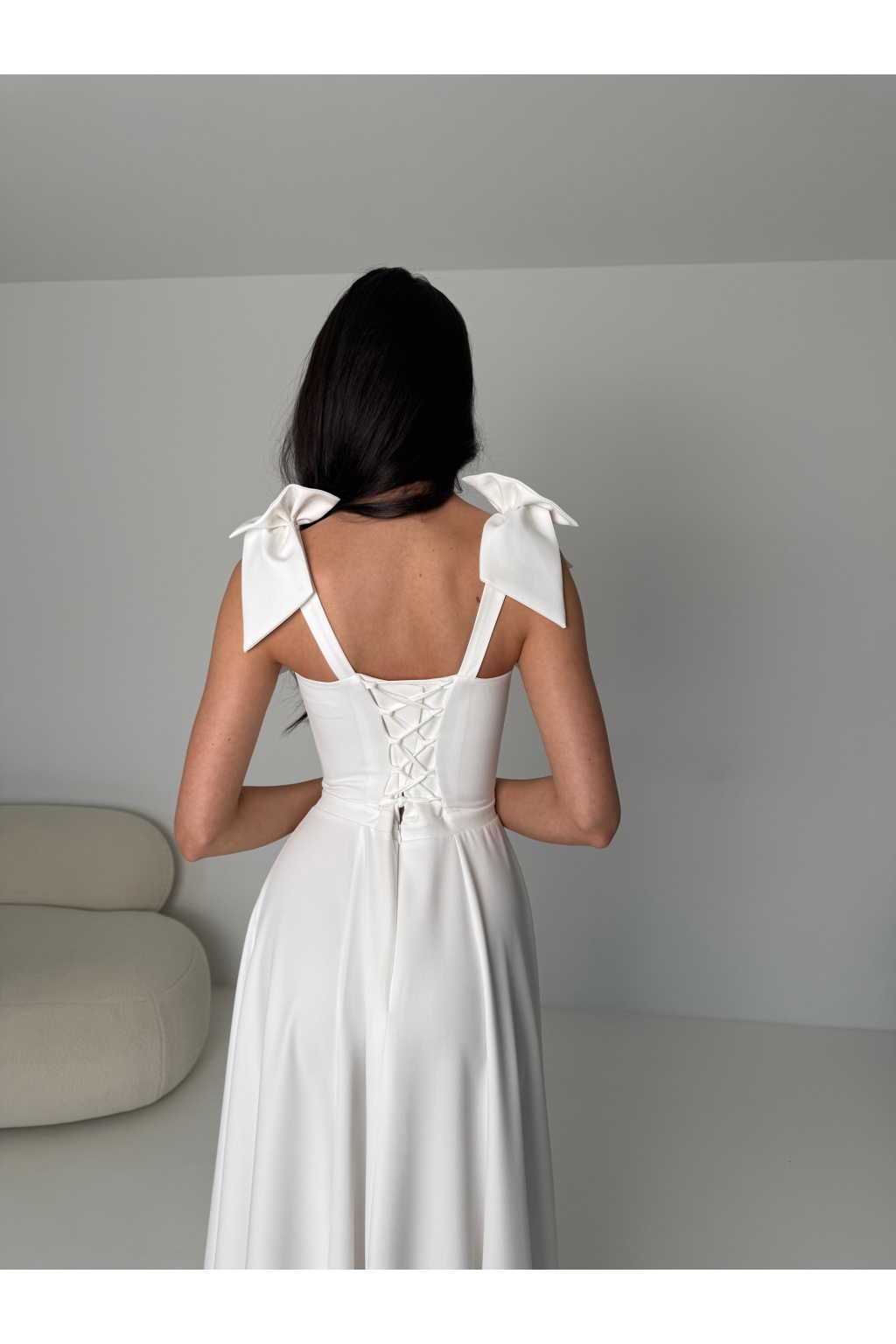 - Ramínka s mašlí: Romantický detail, který dodává šatům jemnost a eleganci. Ramínka můžete nosit s mašlemi nebo bez. Lze je jednouše vyndat.