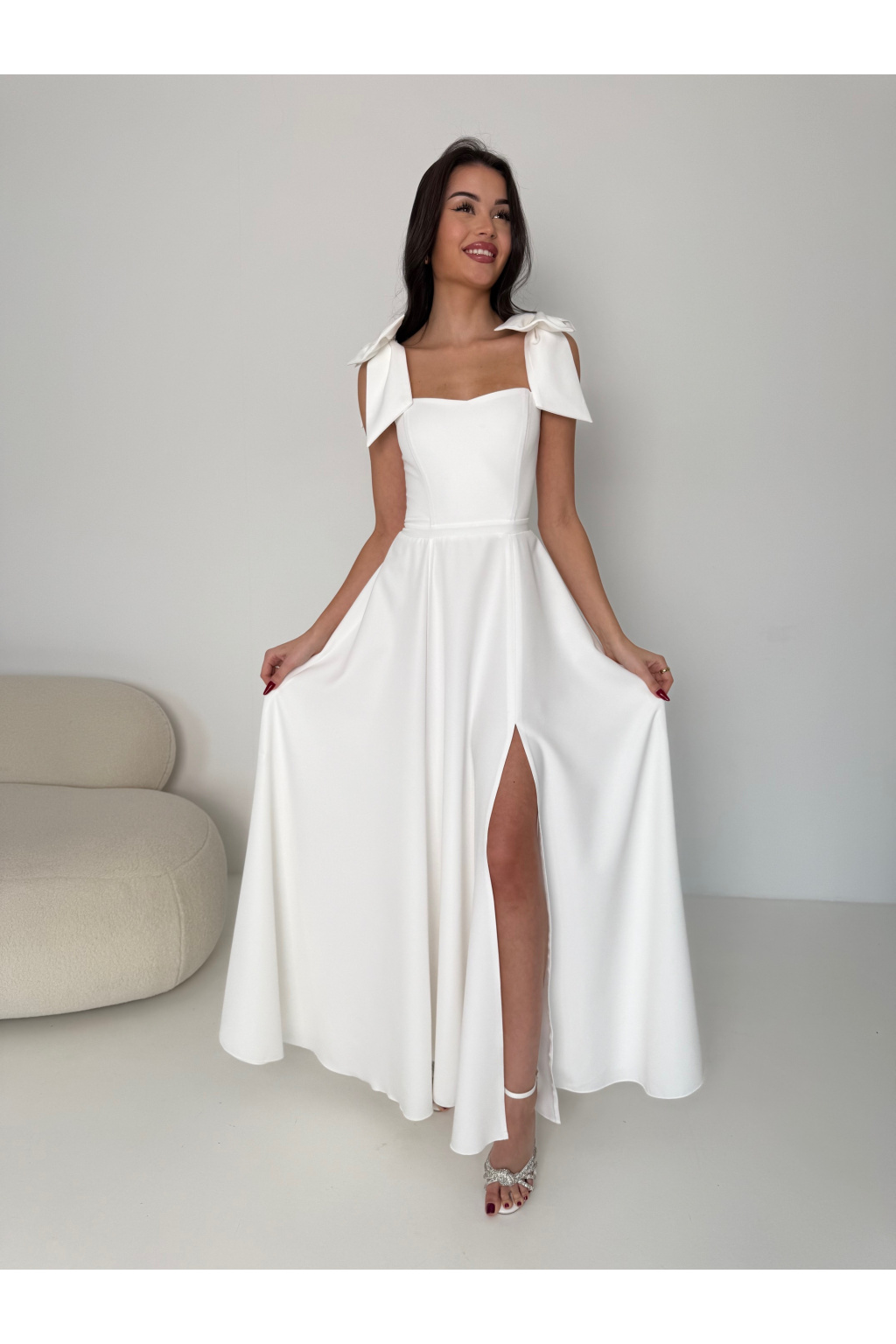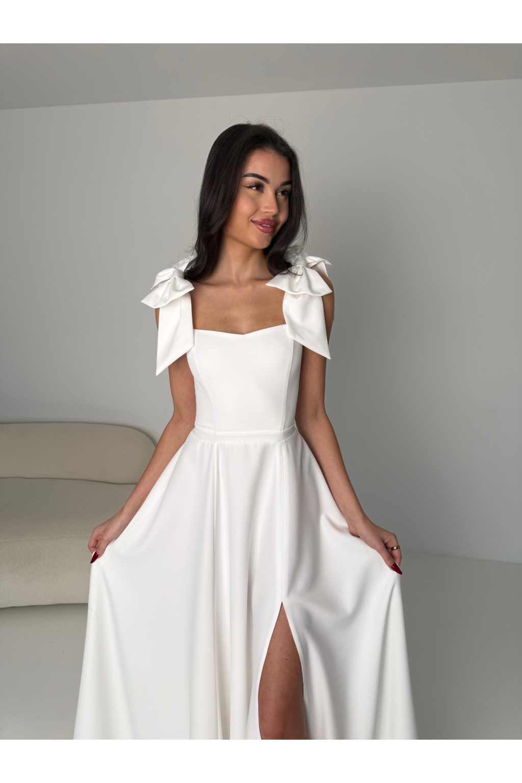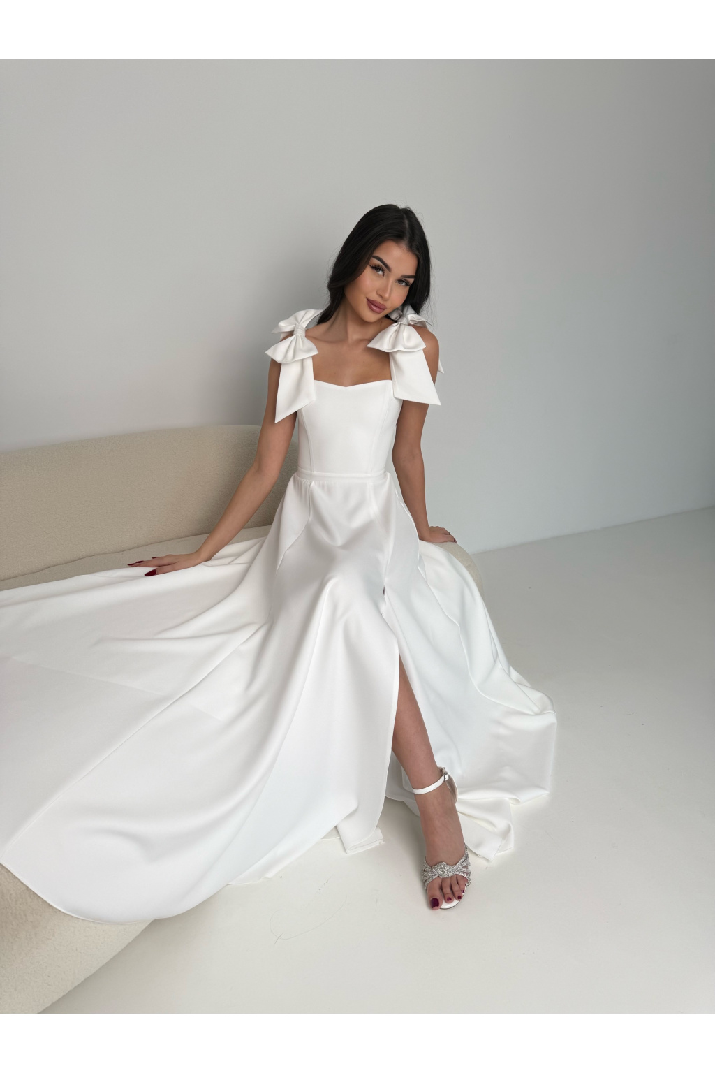 - Ramínka s mašlí: Romantický detail, který dodává šatům jemnost a eleganci. Ramínka můžete nosit s mašlemi nebo bez. Lze je jednouše vyndat.