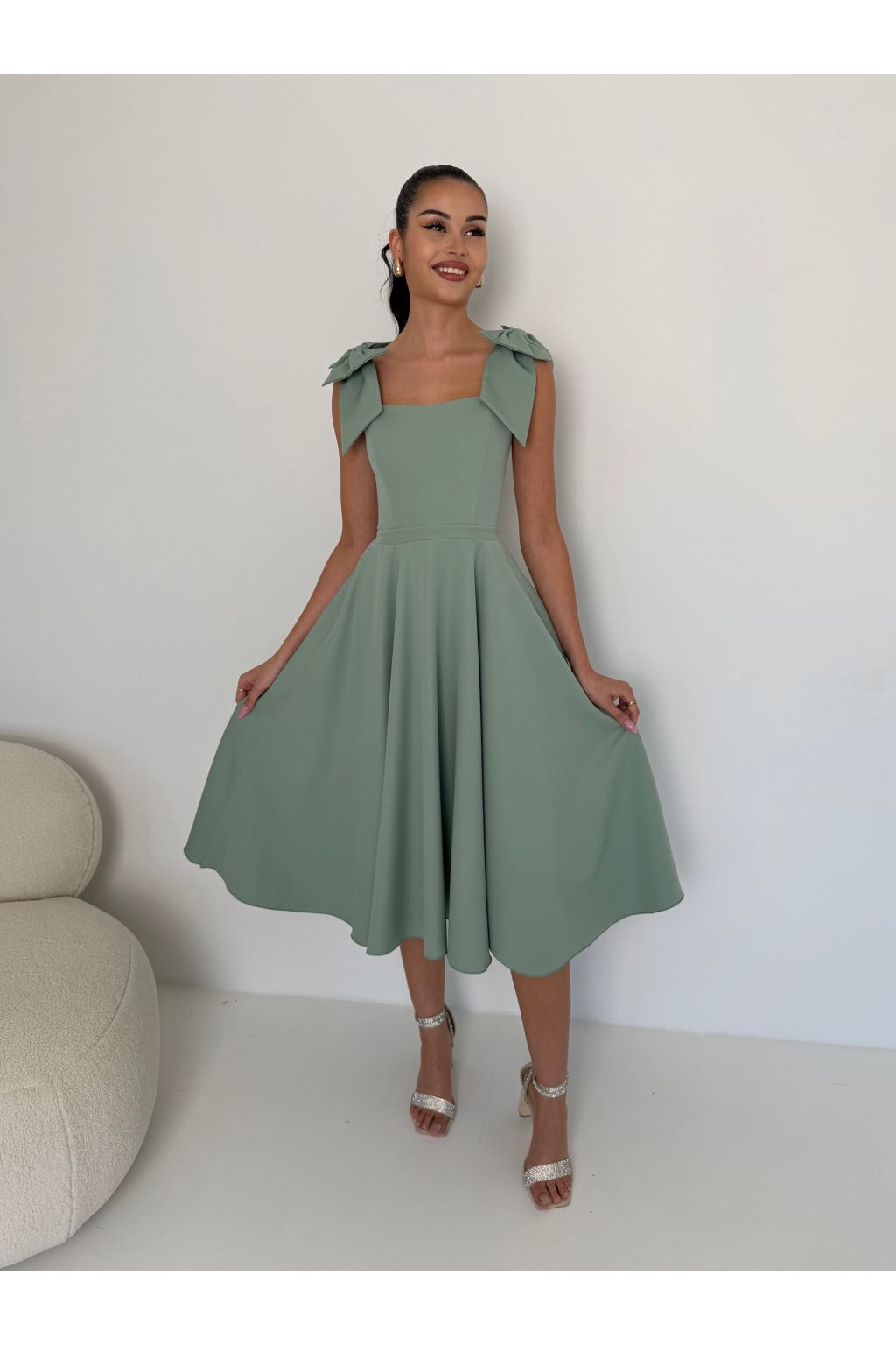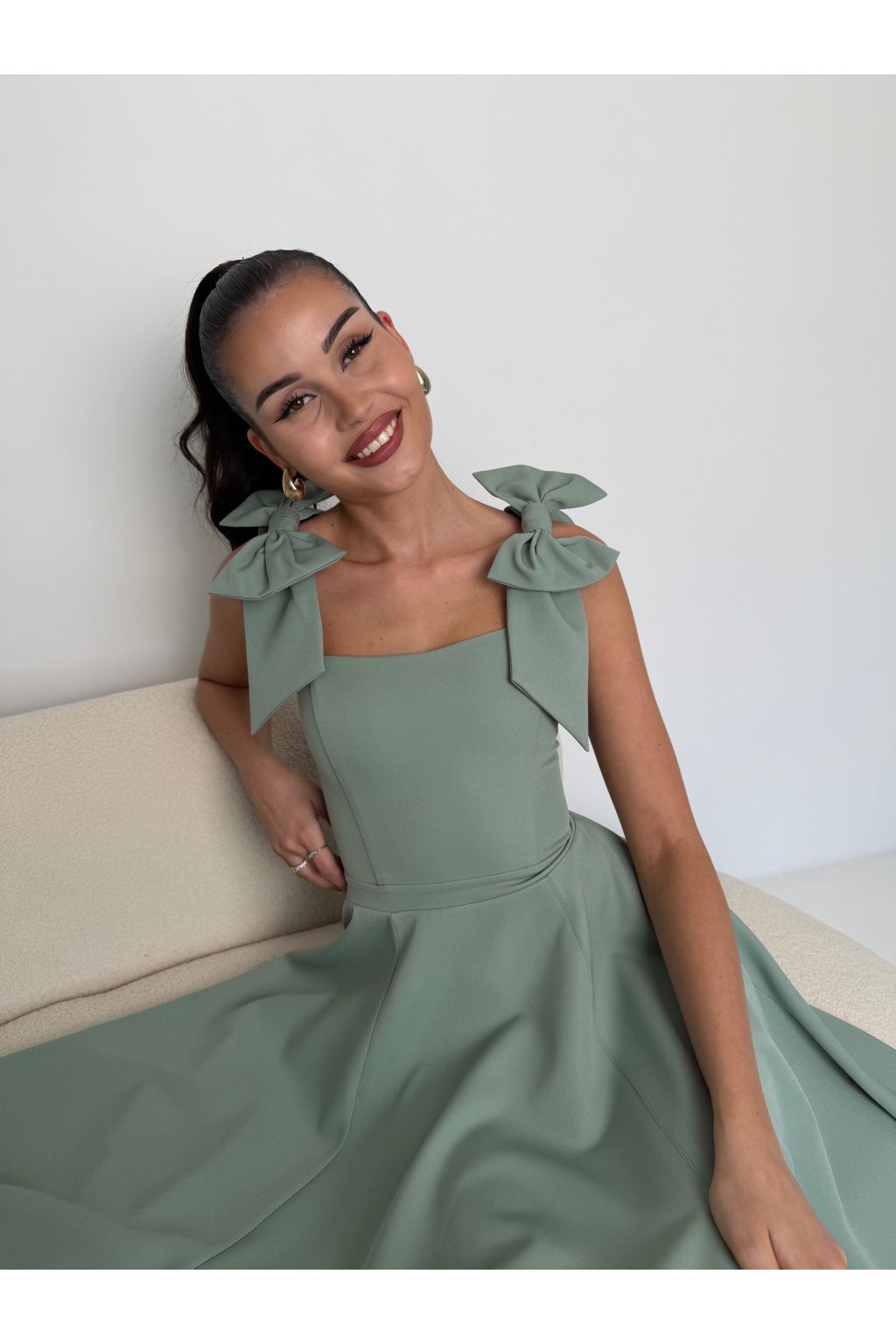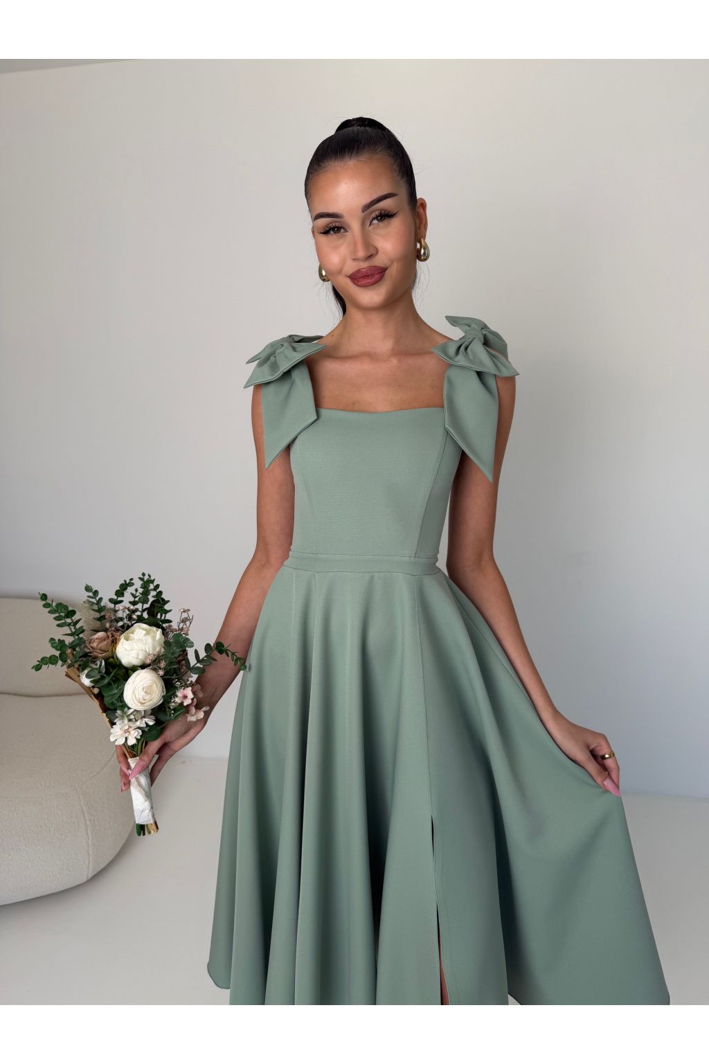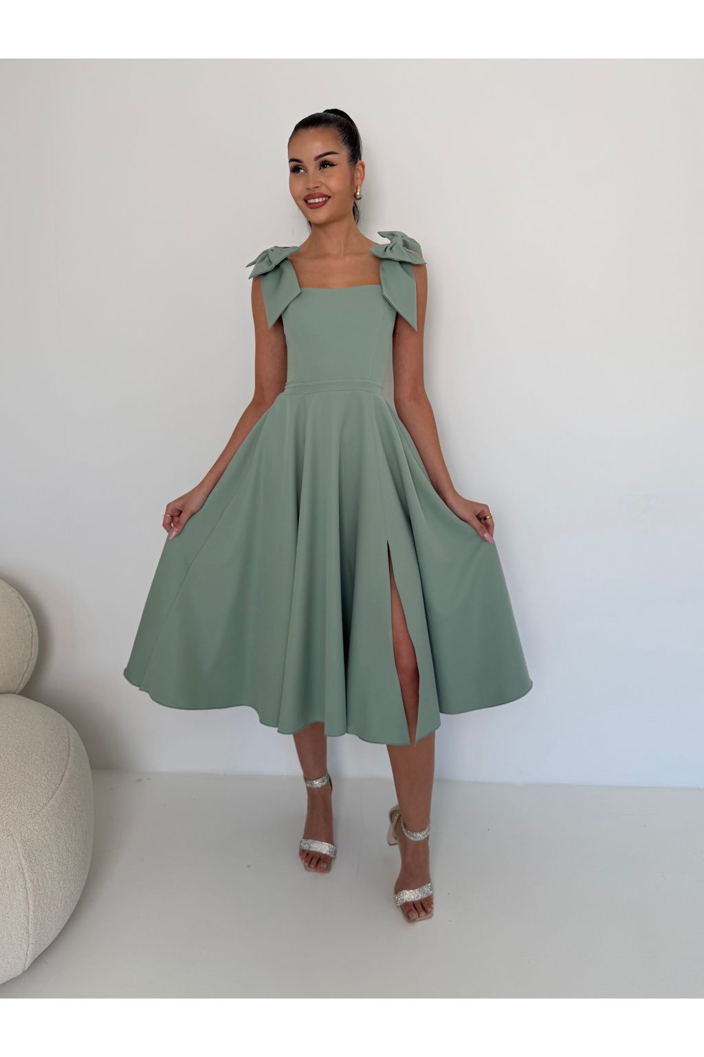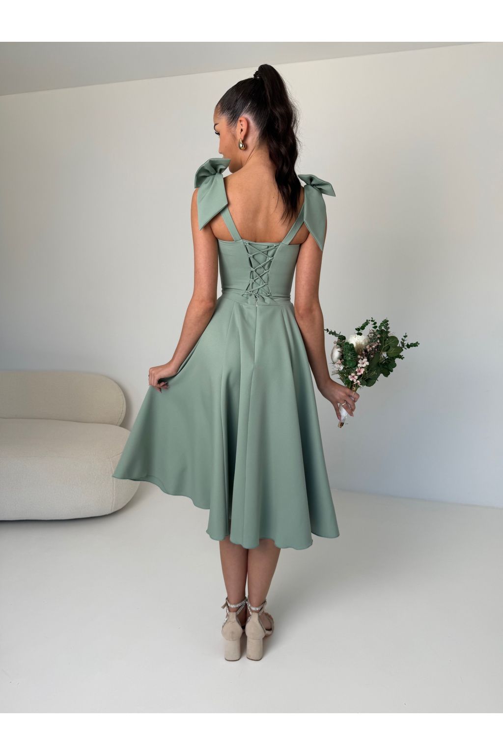 Elegantní společenské šaty s korzetovým výstřihem a ramínky s mašlemi v oblíbené MIDI délce – dokonalá volba pro plesy, na svatby, na stužkovací a taneční. a jiné společenské akce. Šaty mají lichotivý střih, který zvýrazní Vaši ženskost.