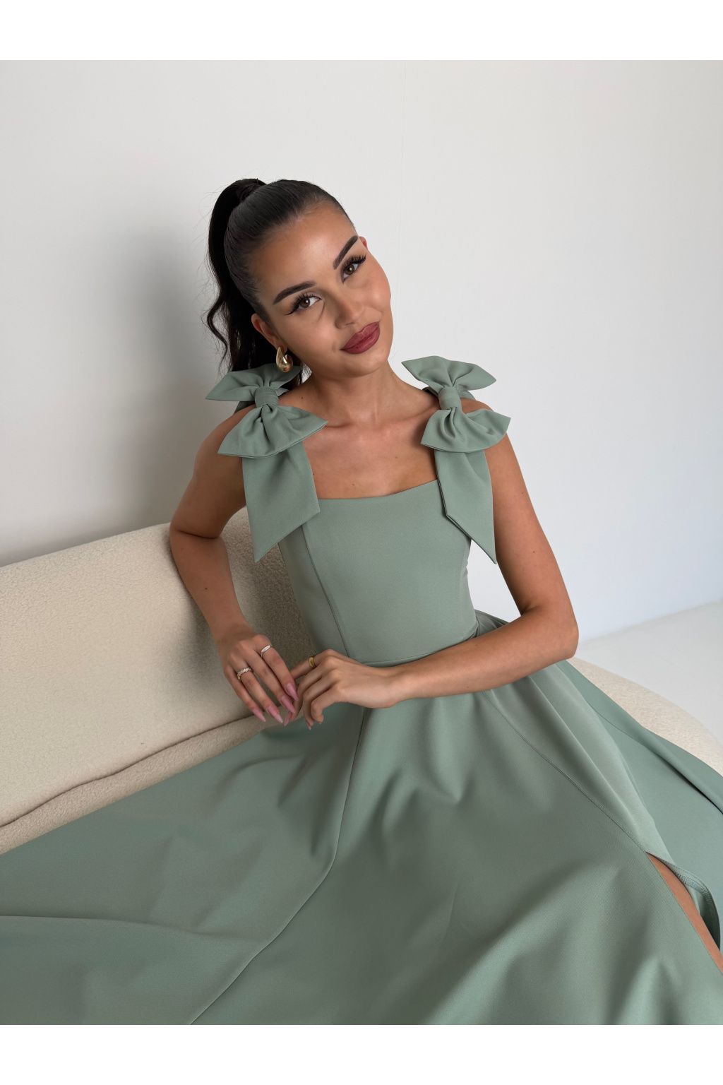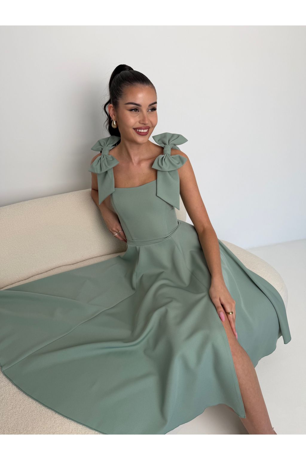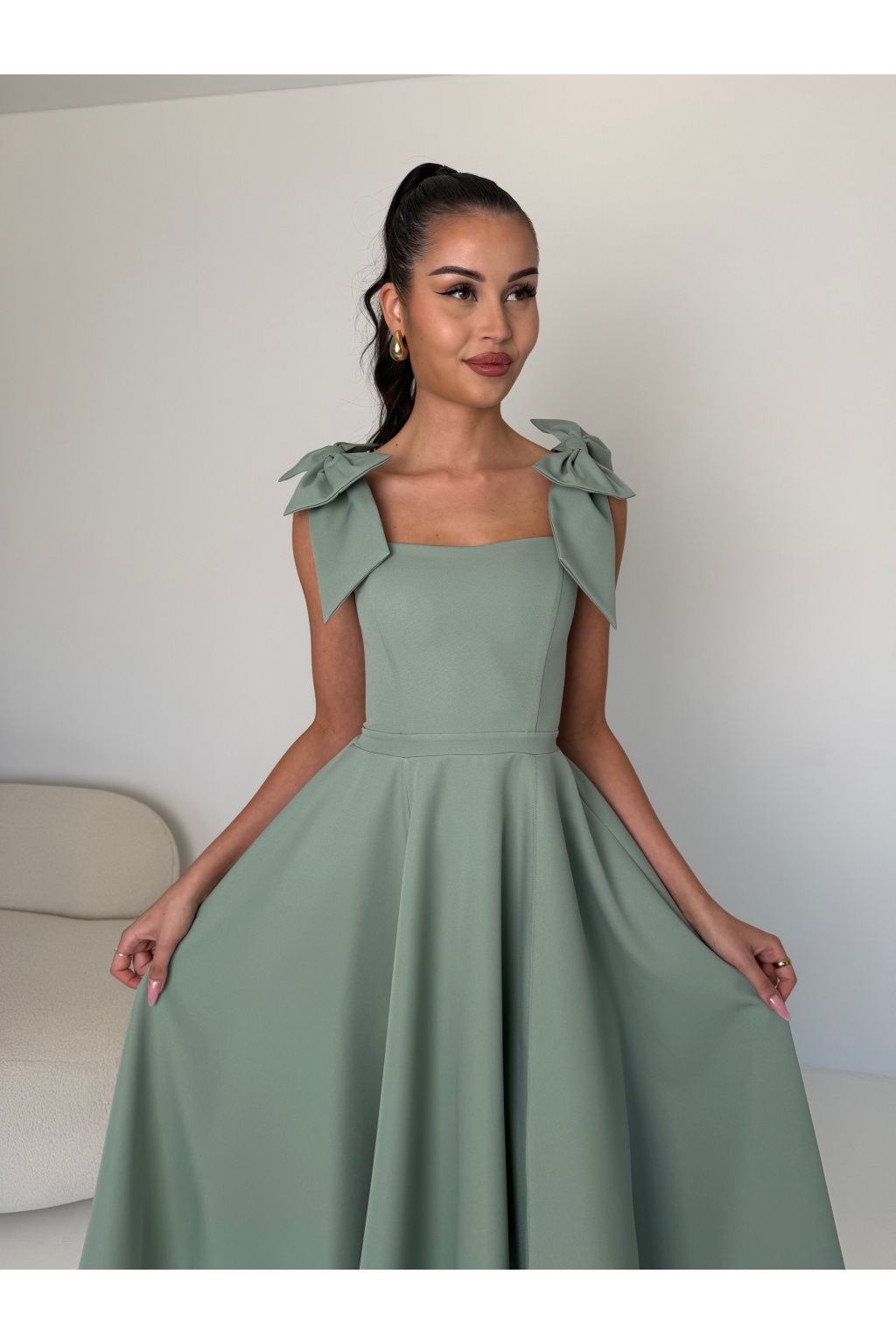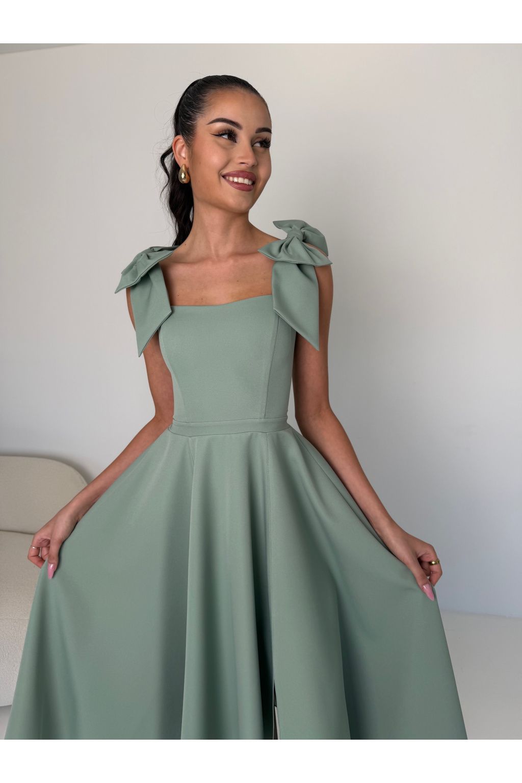 Elegantní společenské šaty s korzetovým výstřihem a ramínky s mašlemi v oblíbené MIDI délce – dokonalá volba pro plesy, na svatby, na stužkovací a taneční. a jiné společenské akce. Šaty mají lichotivý střih, který zvýrazní Vaši ženskost.