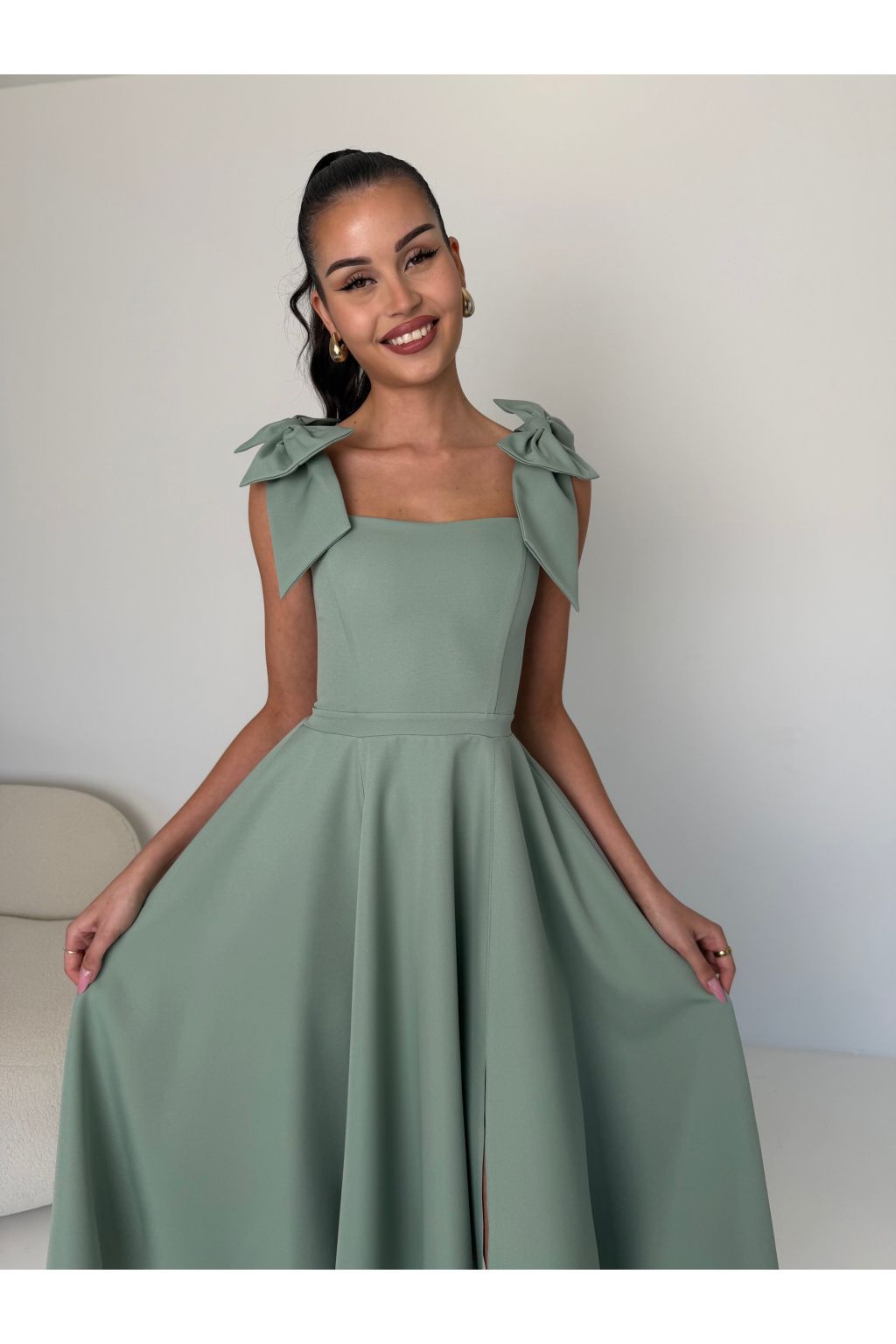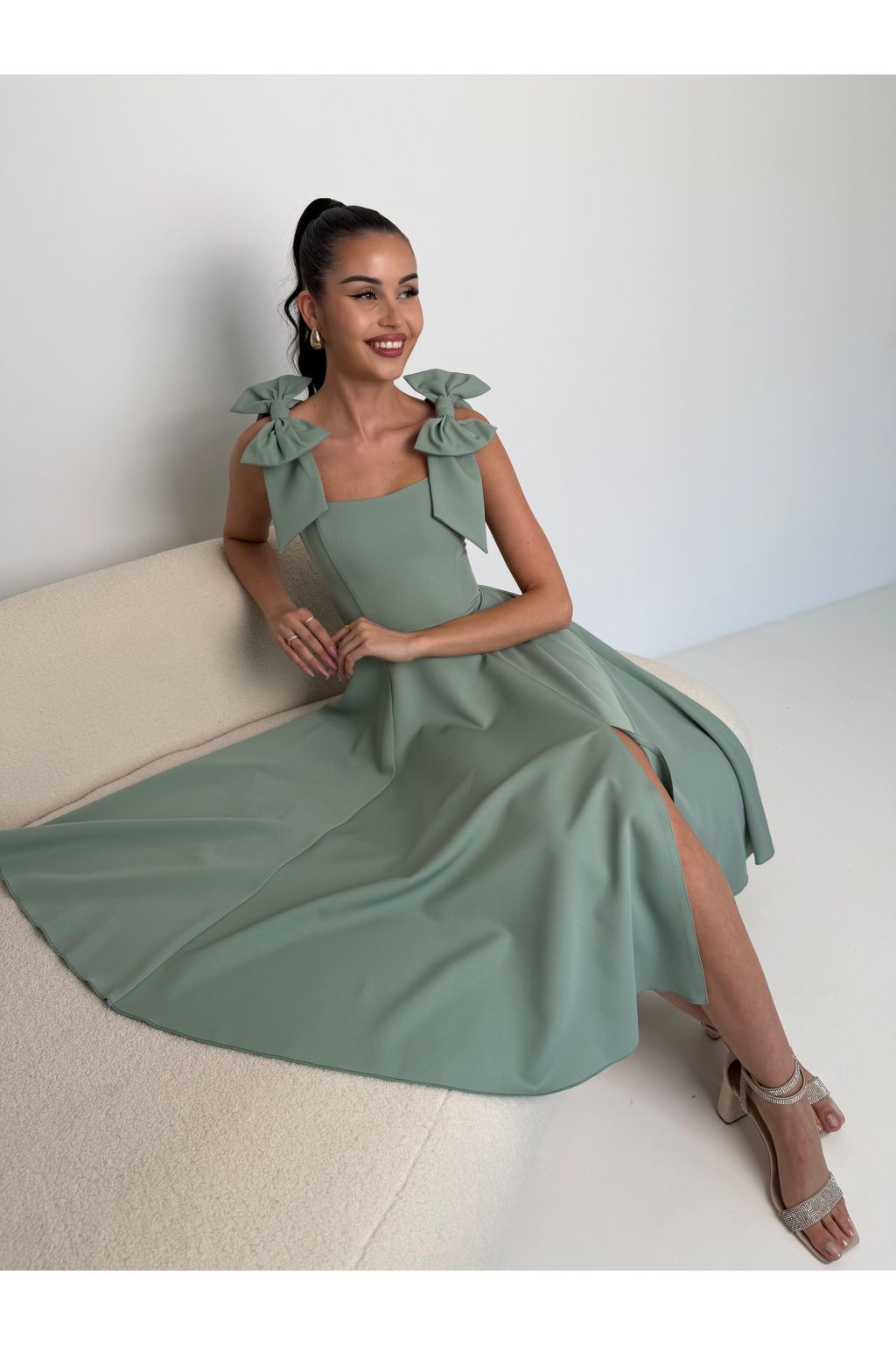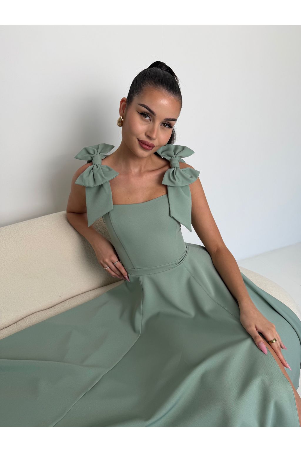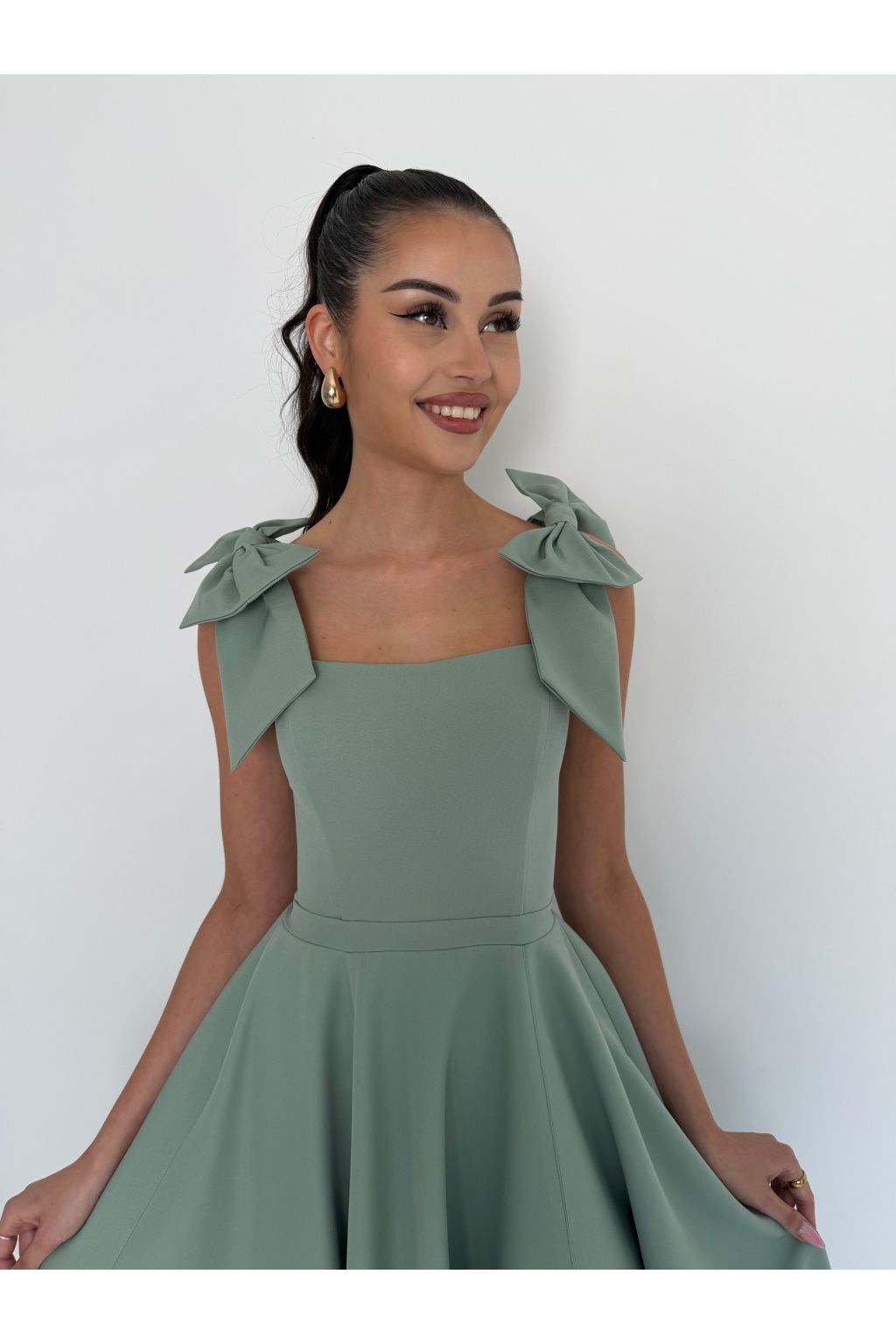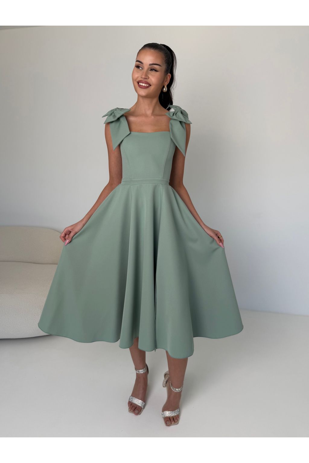 Elegantní společenské šaty s korzetovým výstřihem a ramínky s mašlemi v oblíbené MIDI délce – dokonalá volba pro plesy, na svatby, na stužkovací a taneční. a jiné společenské akce. Šaty mají lichotivý střih, který zvýrazní Vaši ženskost.