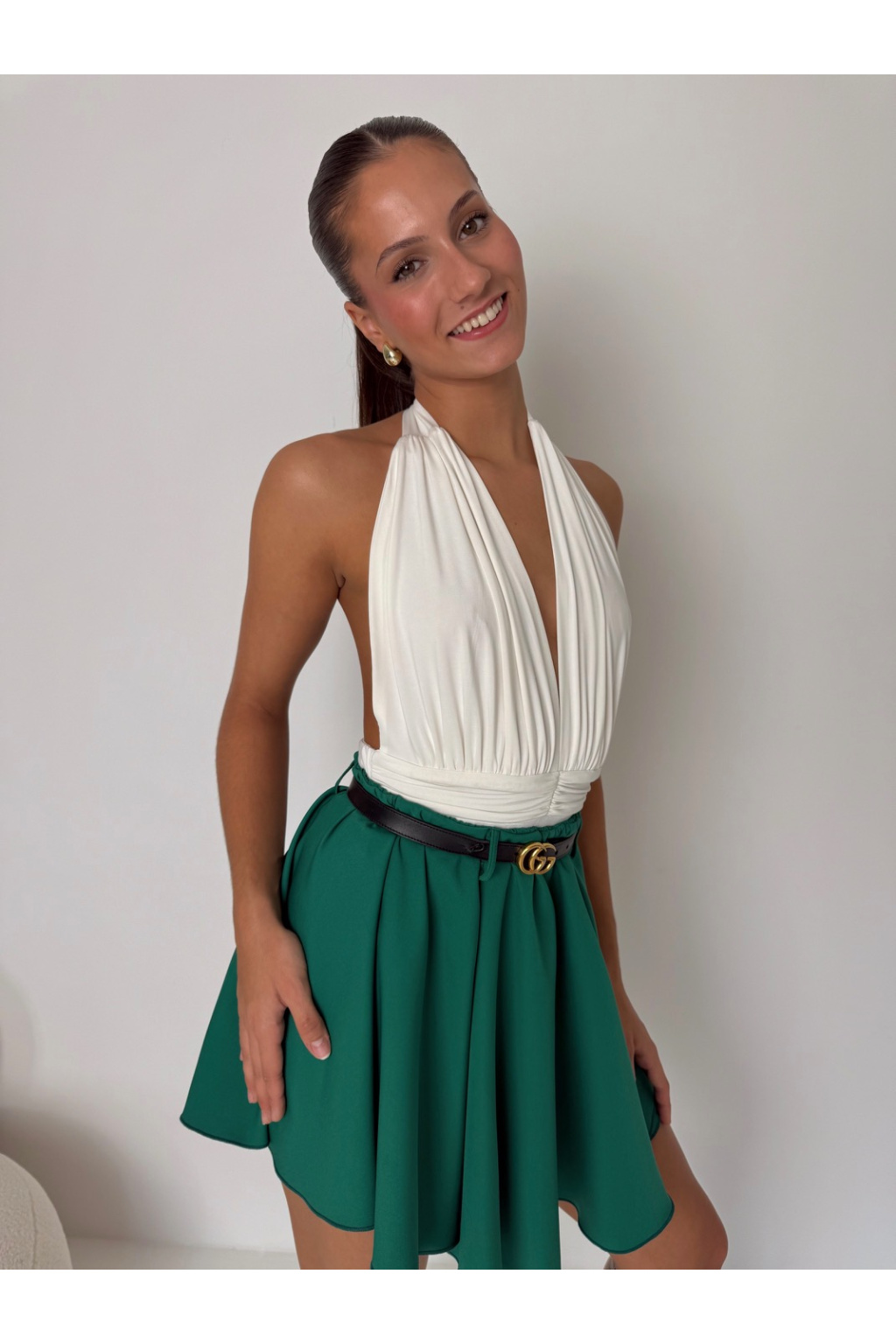• Nad pasem je řasení, které vytváří zajímavý a jedinečný look.