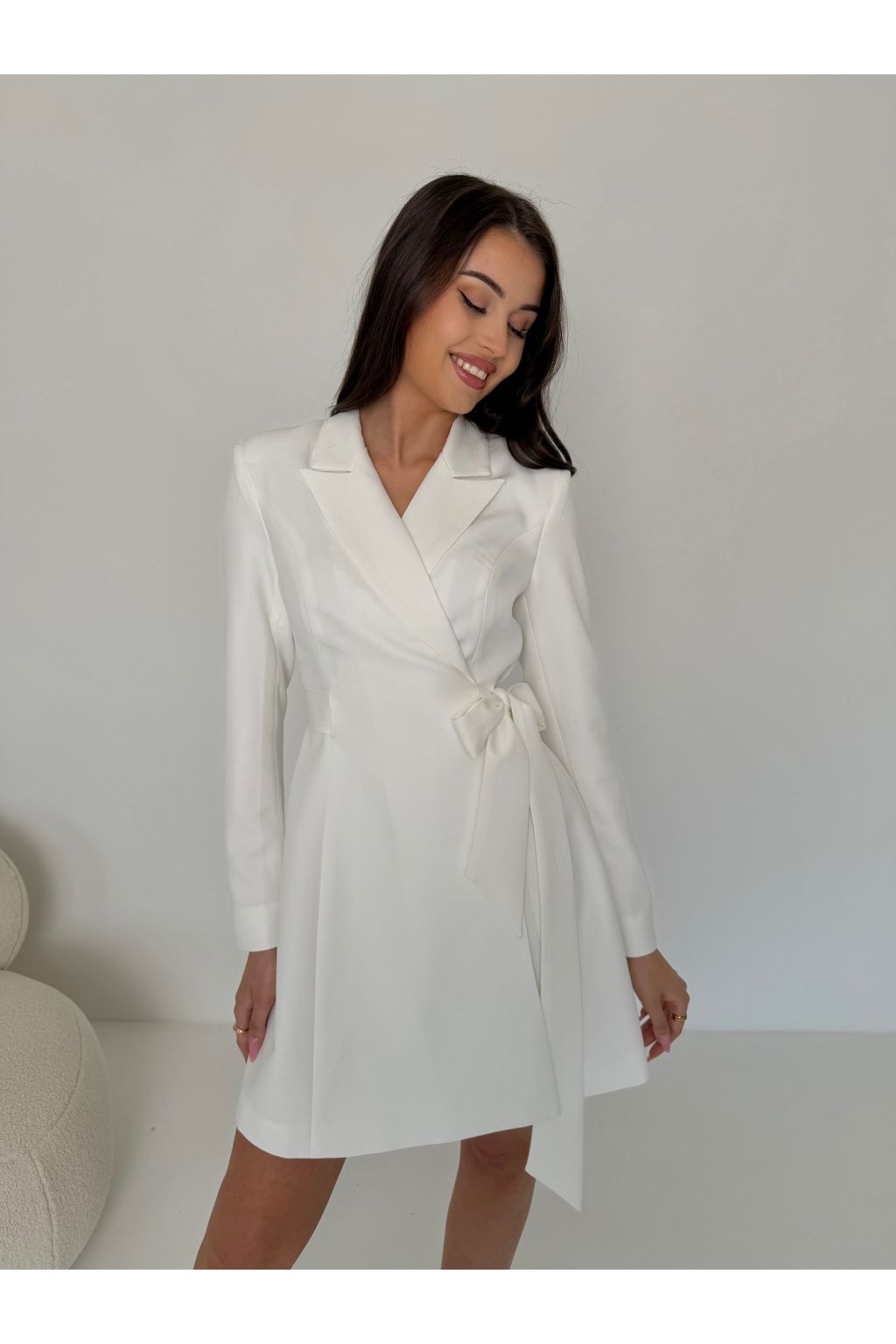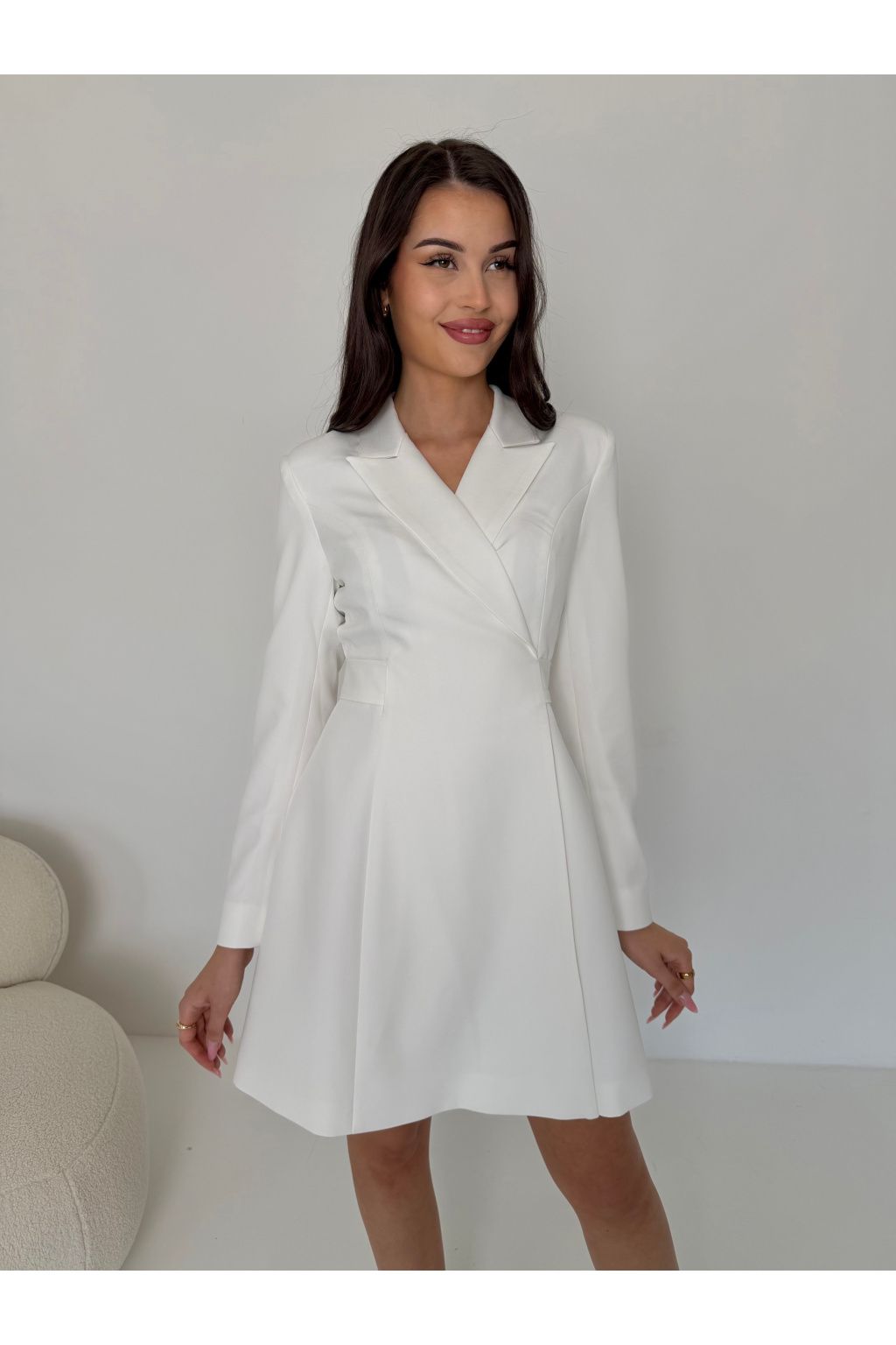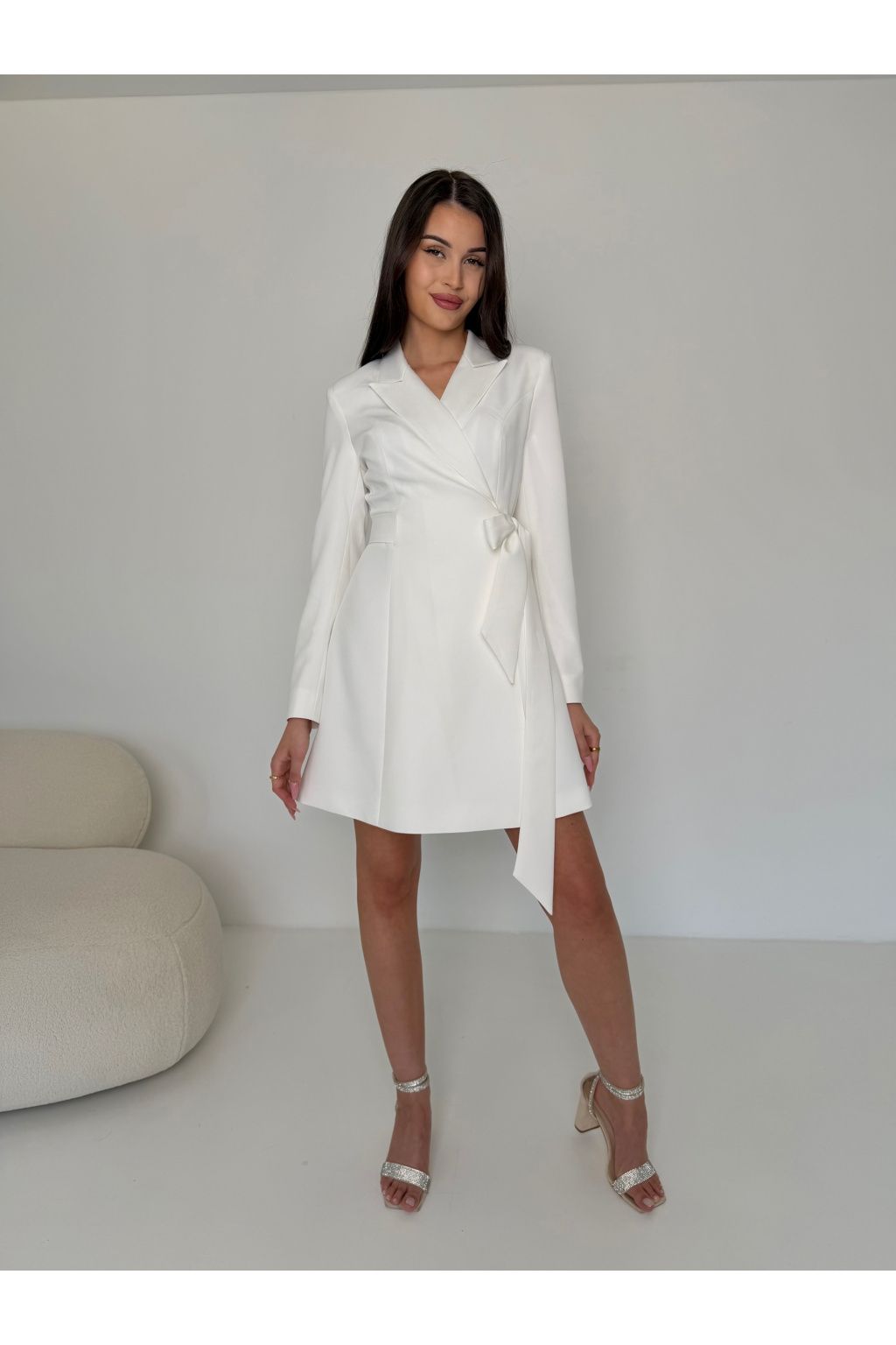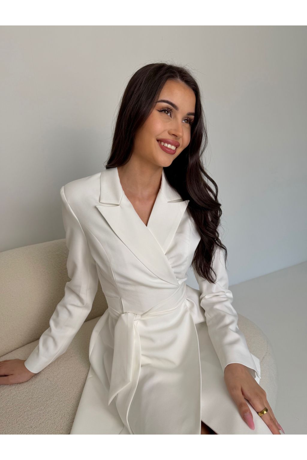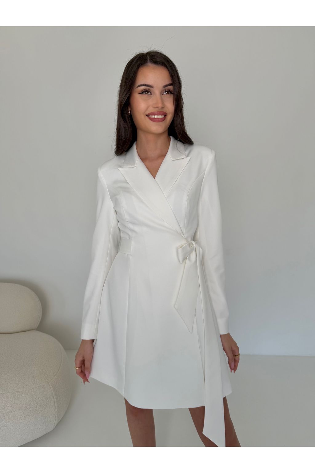 Zavinovací elegantní šaty s dlouhým rukávem bílé