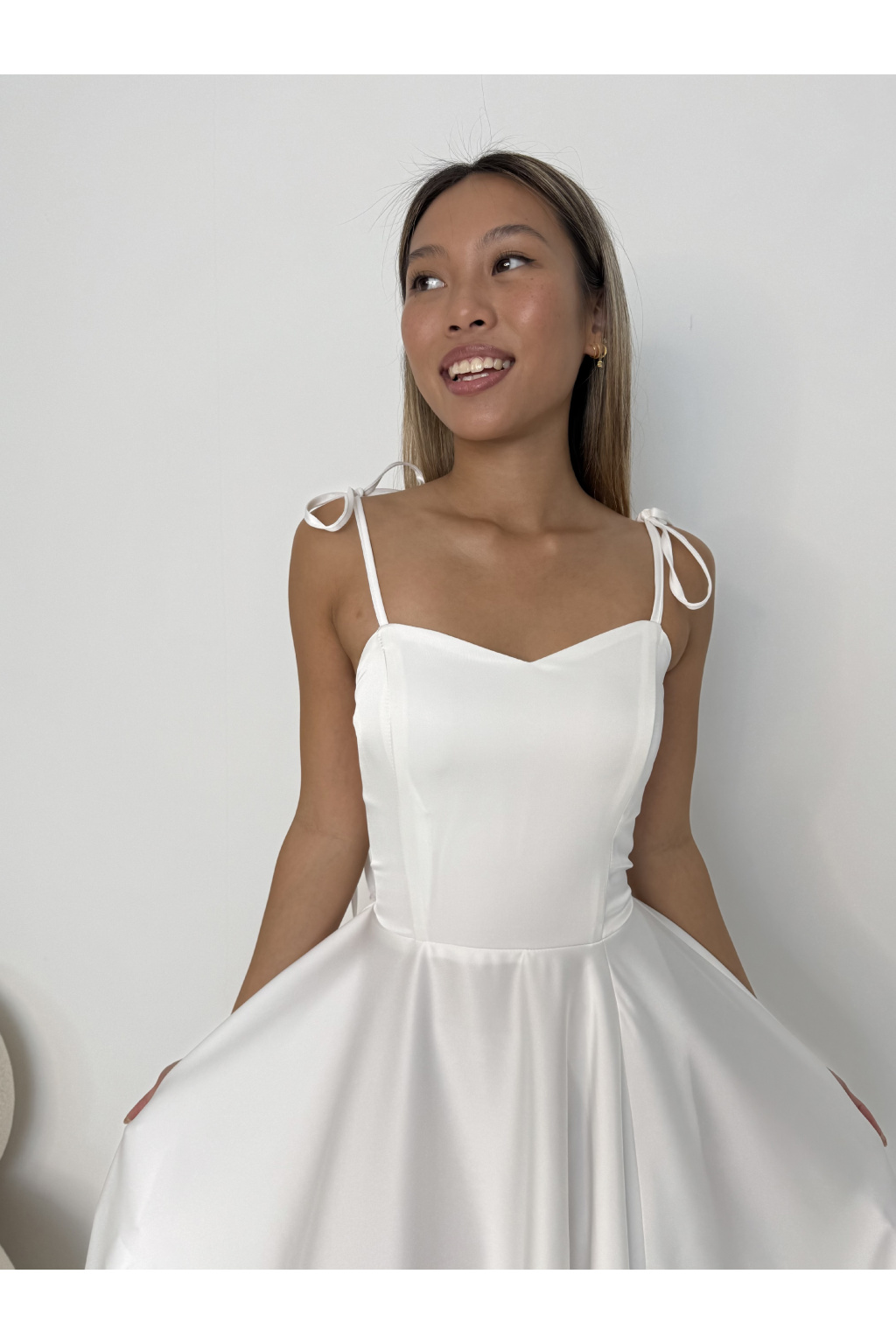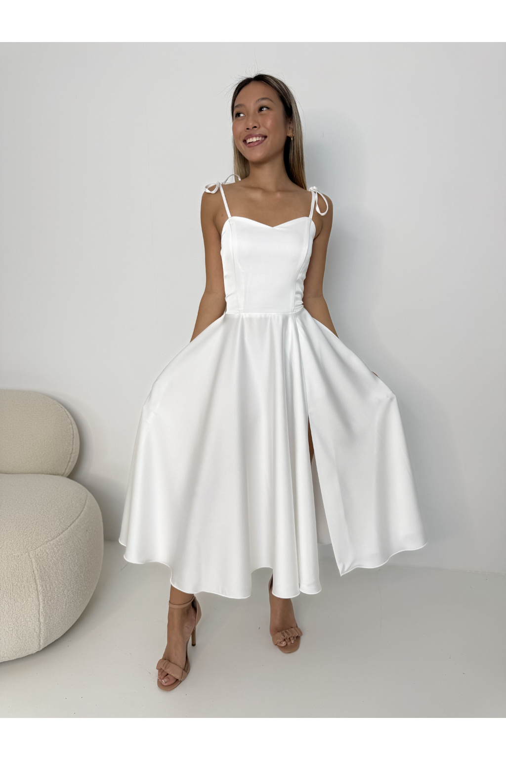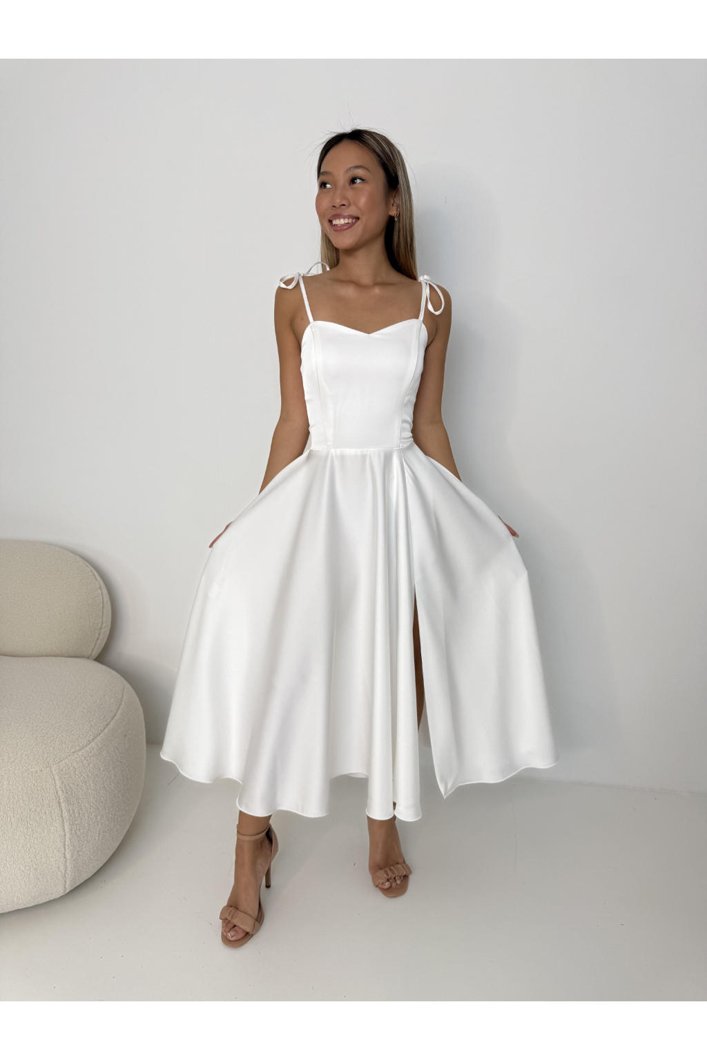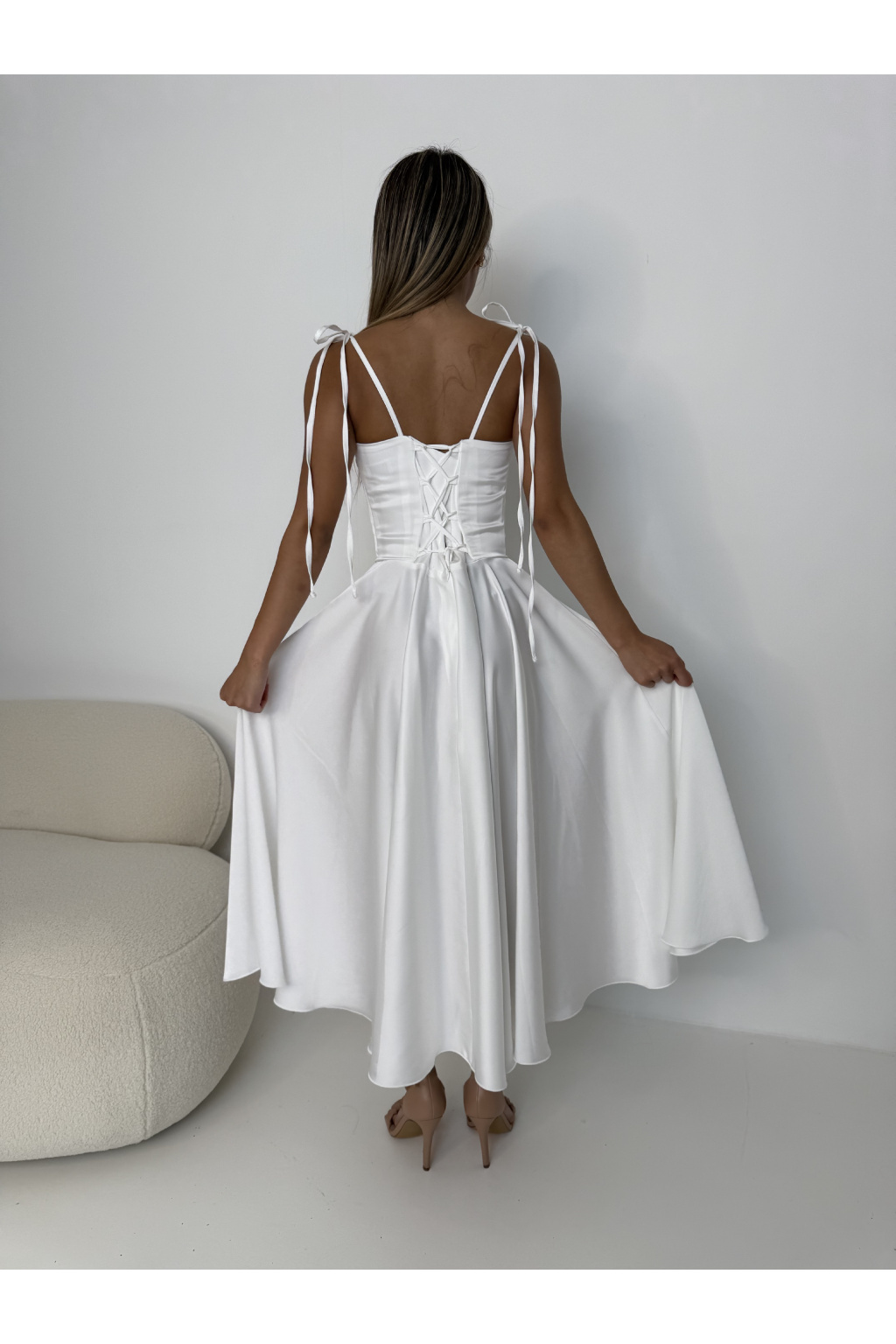 Saténové korzetové šaty ZAIRA MIDI s ramínky Bílé
