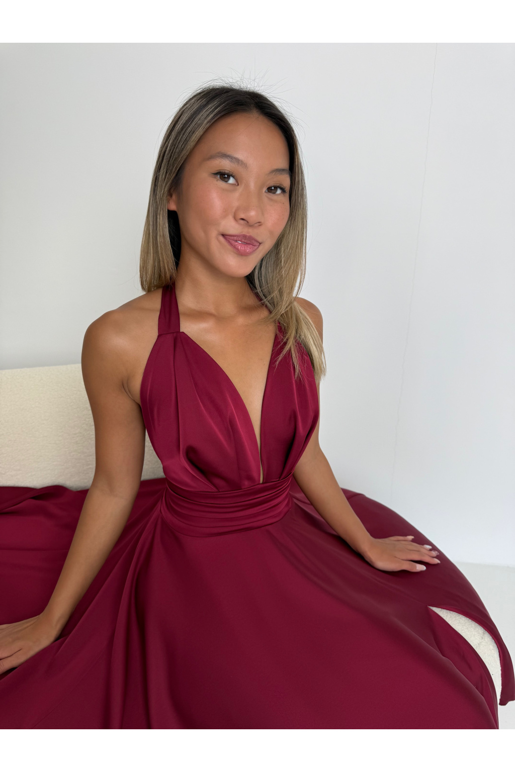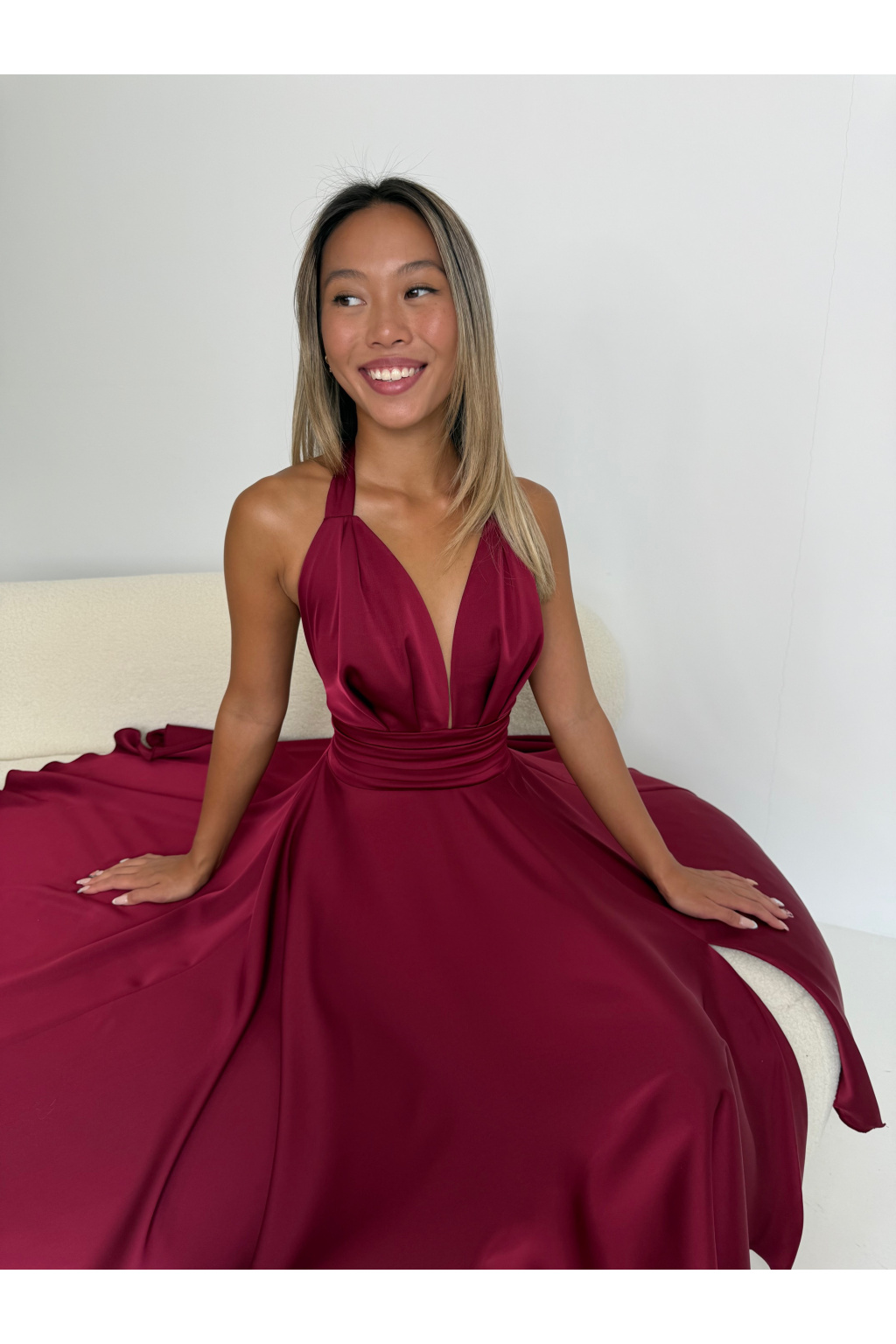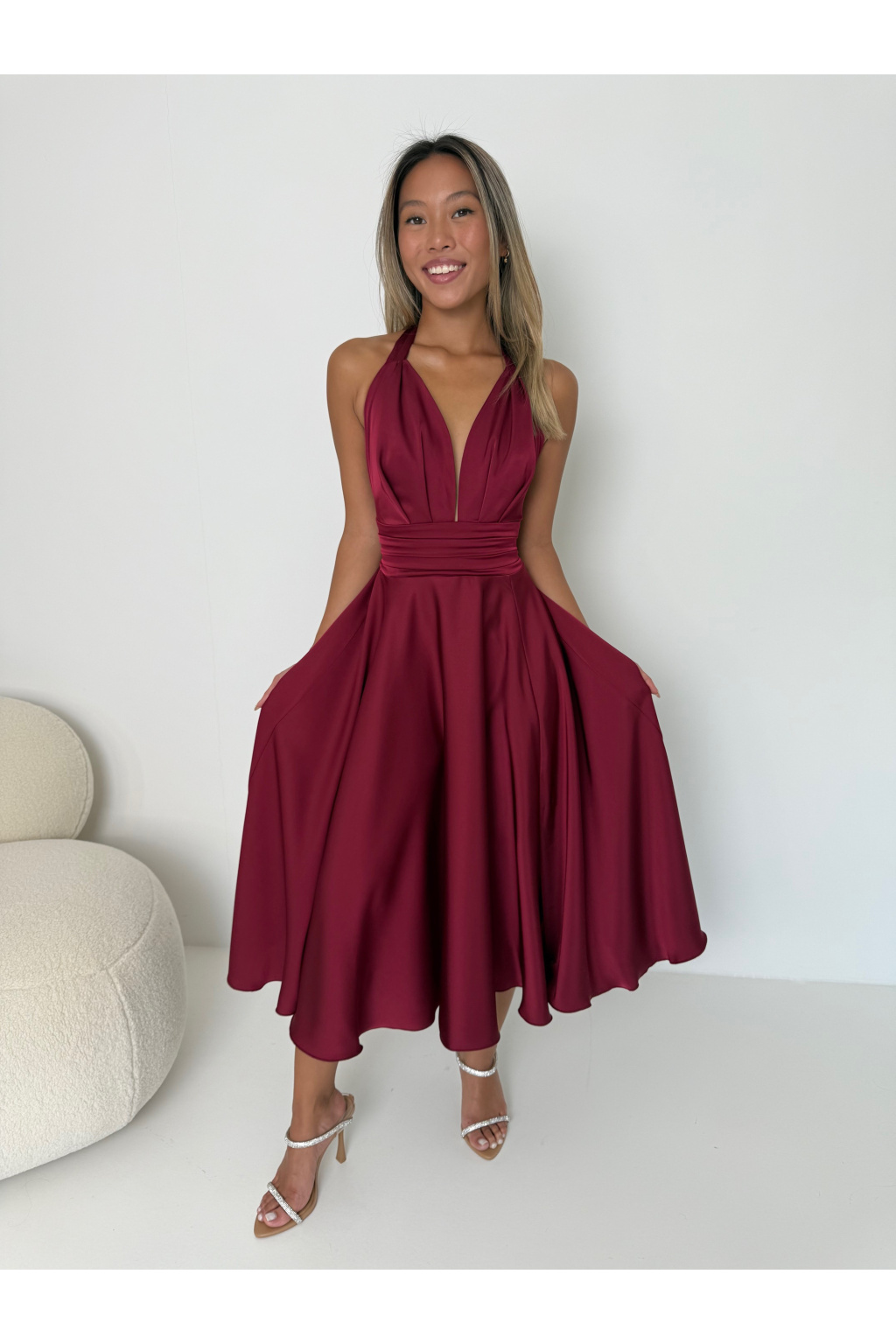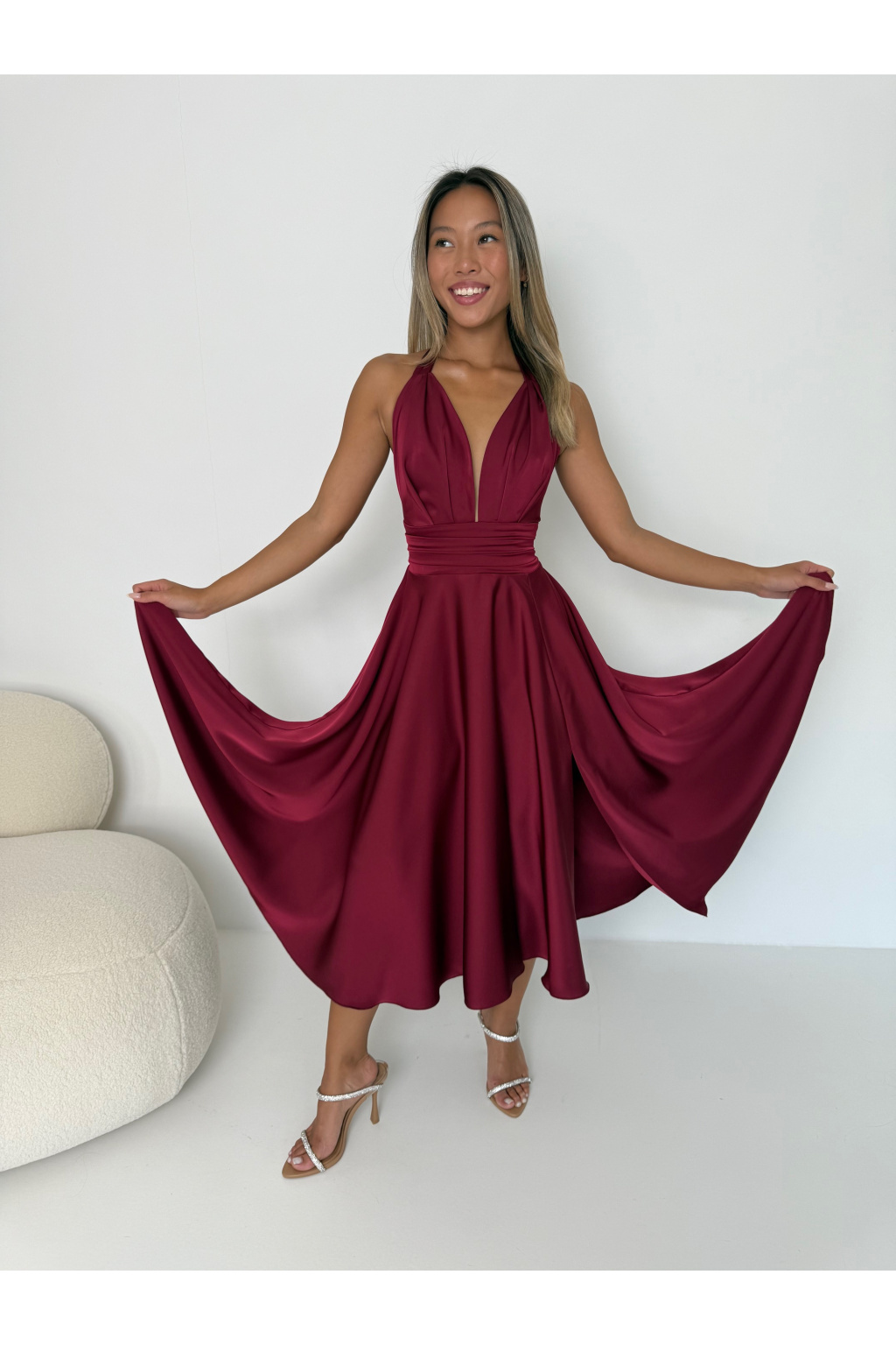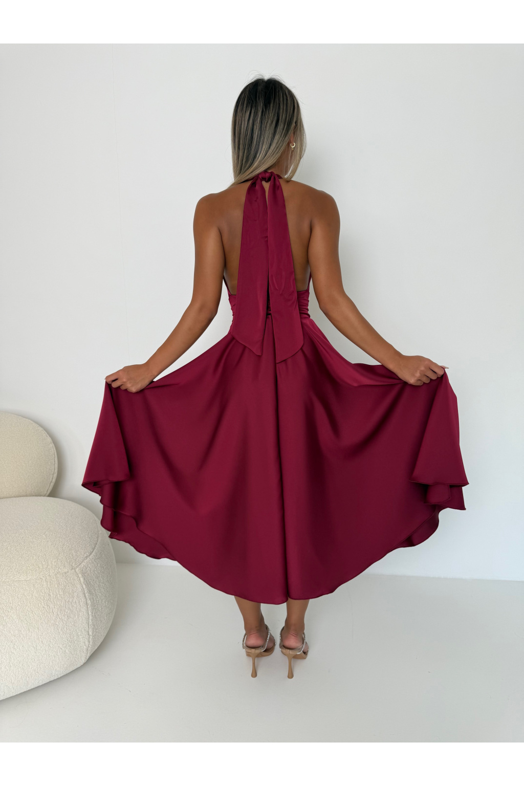 Saténové šaty MARILYN MIDI vínové