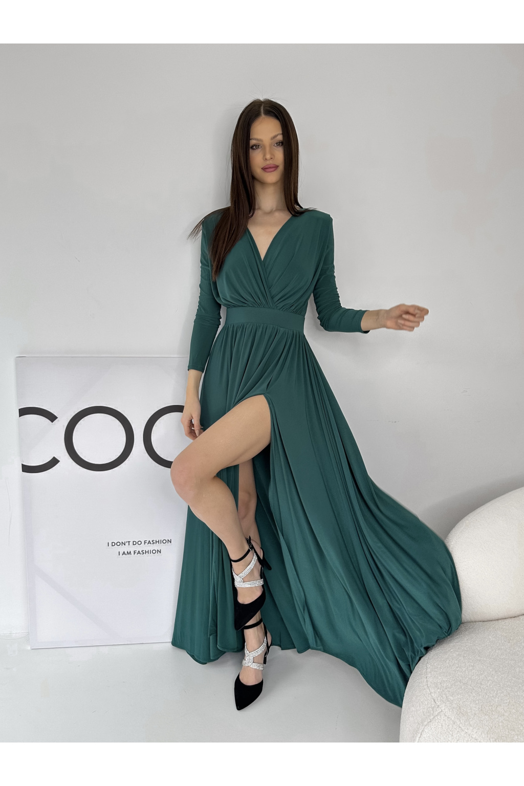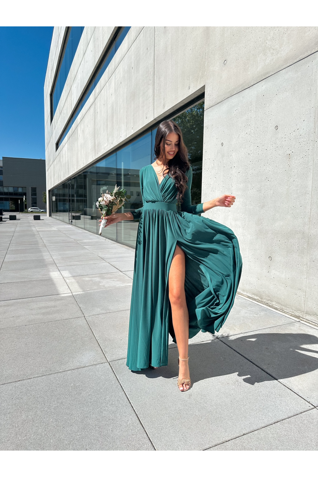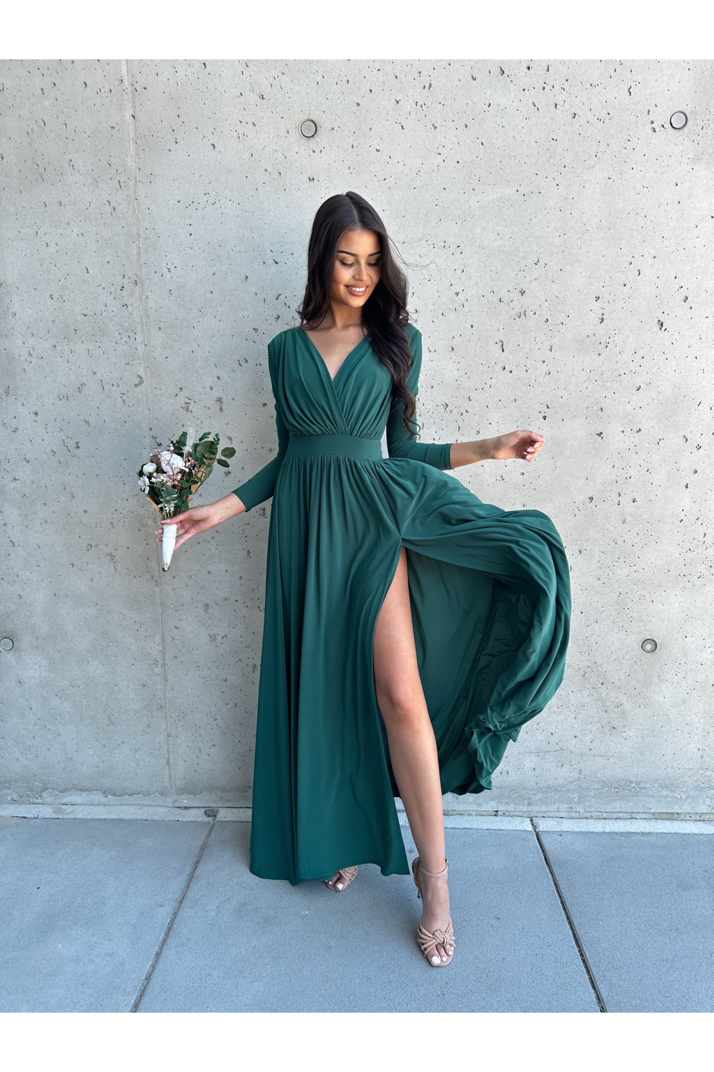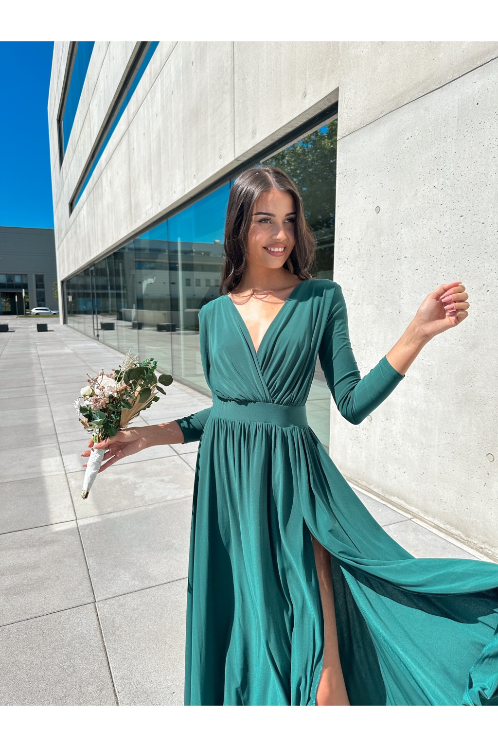 - Dloluhé šaty s dlouhým rukávem v krásné smaragdové barvě - NAŠE KOLEKCE ŠATŮ!