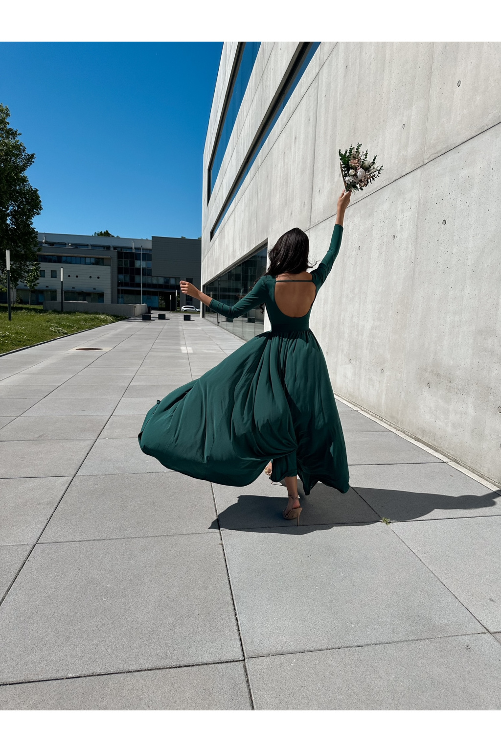 Dokonalé dlouhé šaty s dlouhým rukávem a odhalenými zády, ve kterých budeš za princeznu!