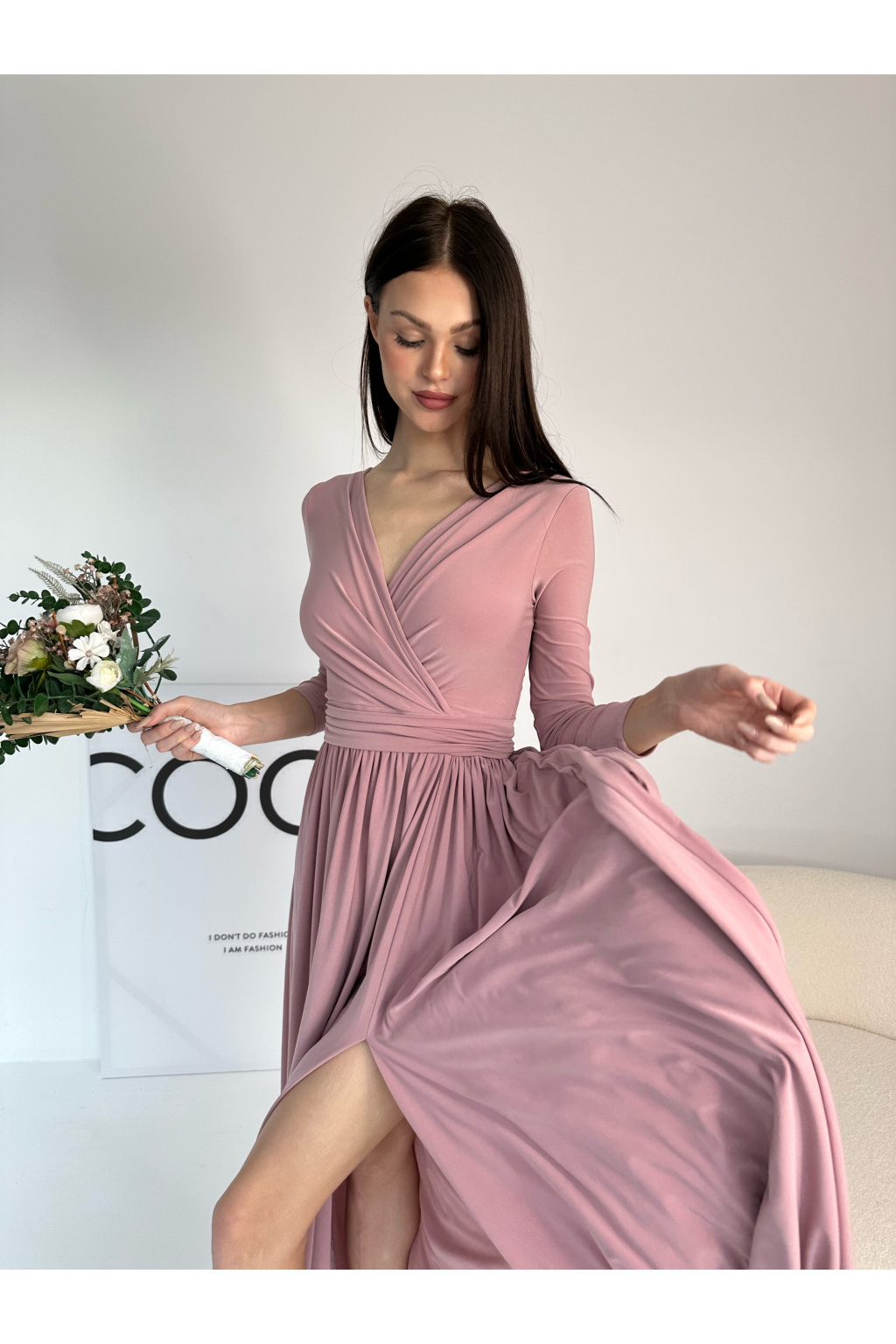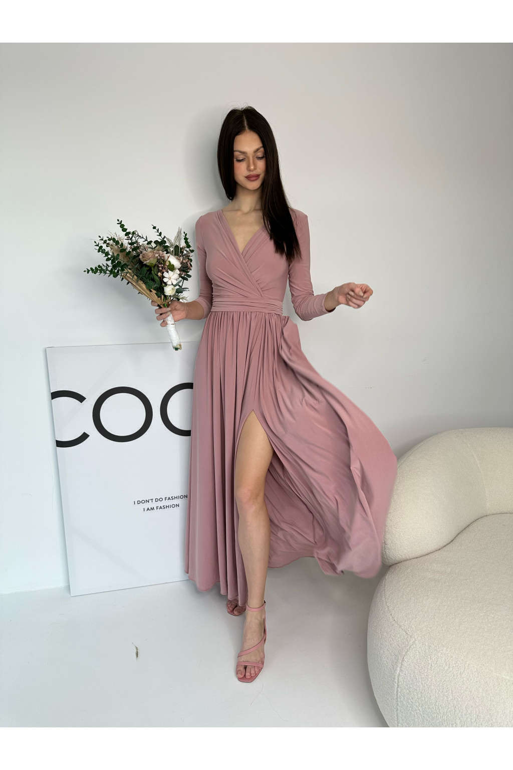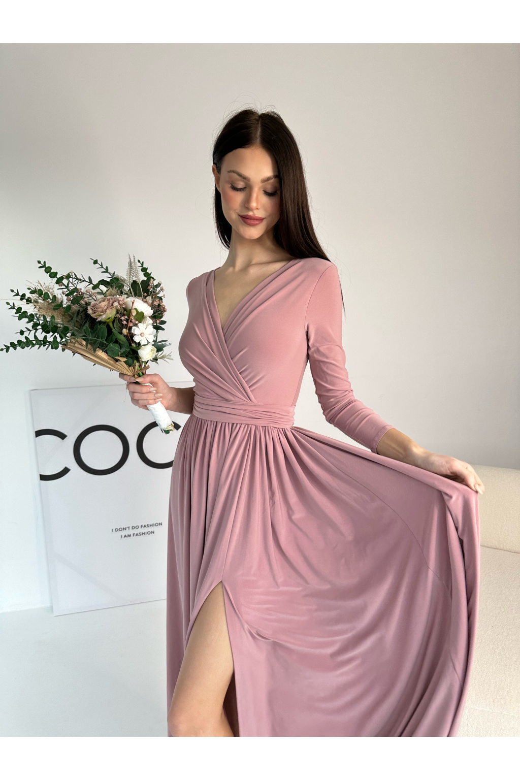 - Dlouhé šaty s dlouhým rukávem v krásné trendy barvě