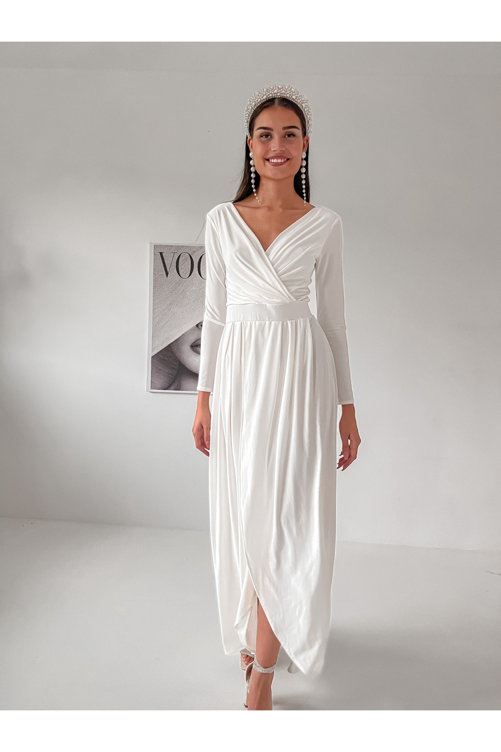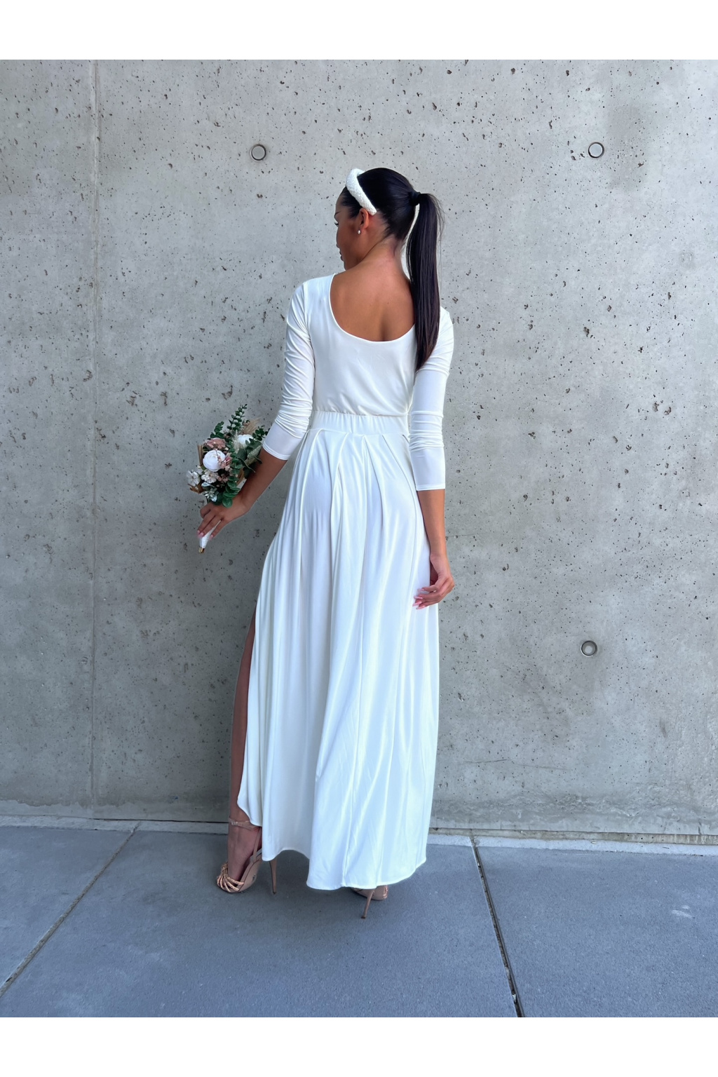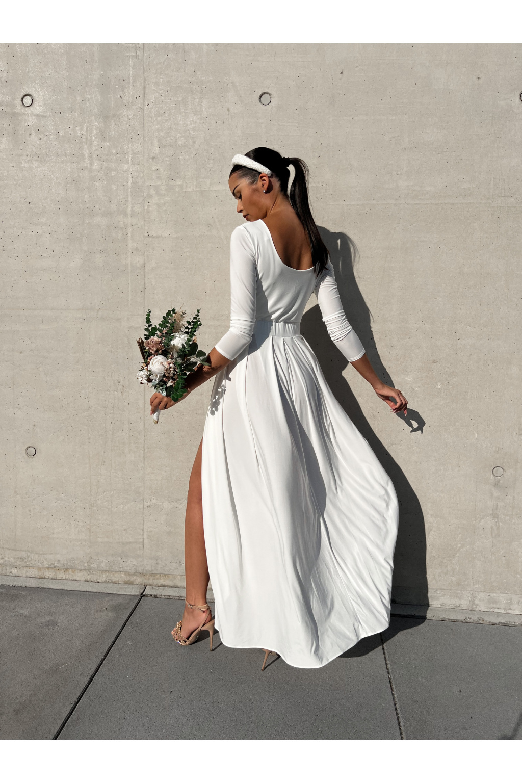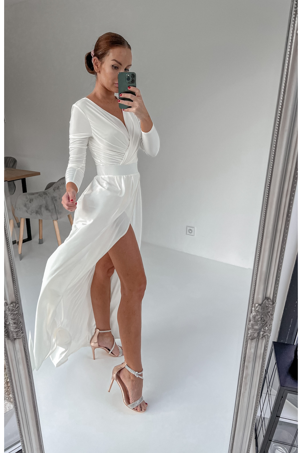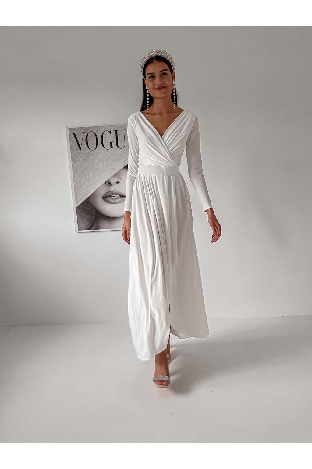 - Dlouhé šaty s dlouhým rukávem v krásné smetanovo-bílé barvě – NAŠE KOLEKCE ŠATŮ!