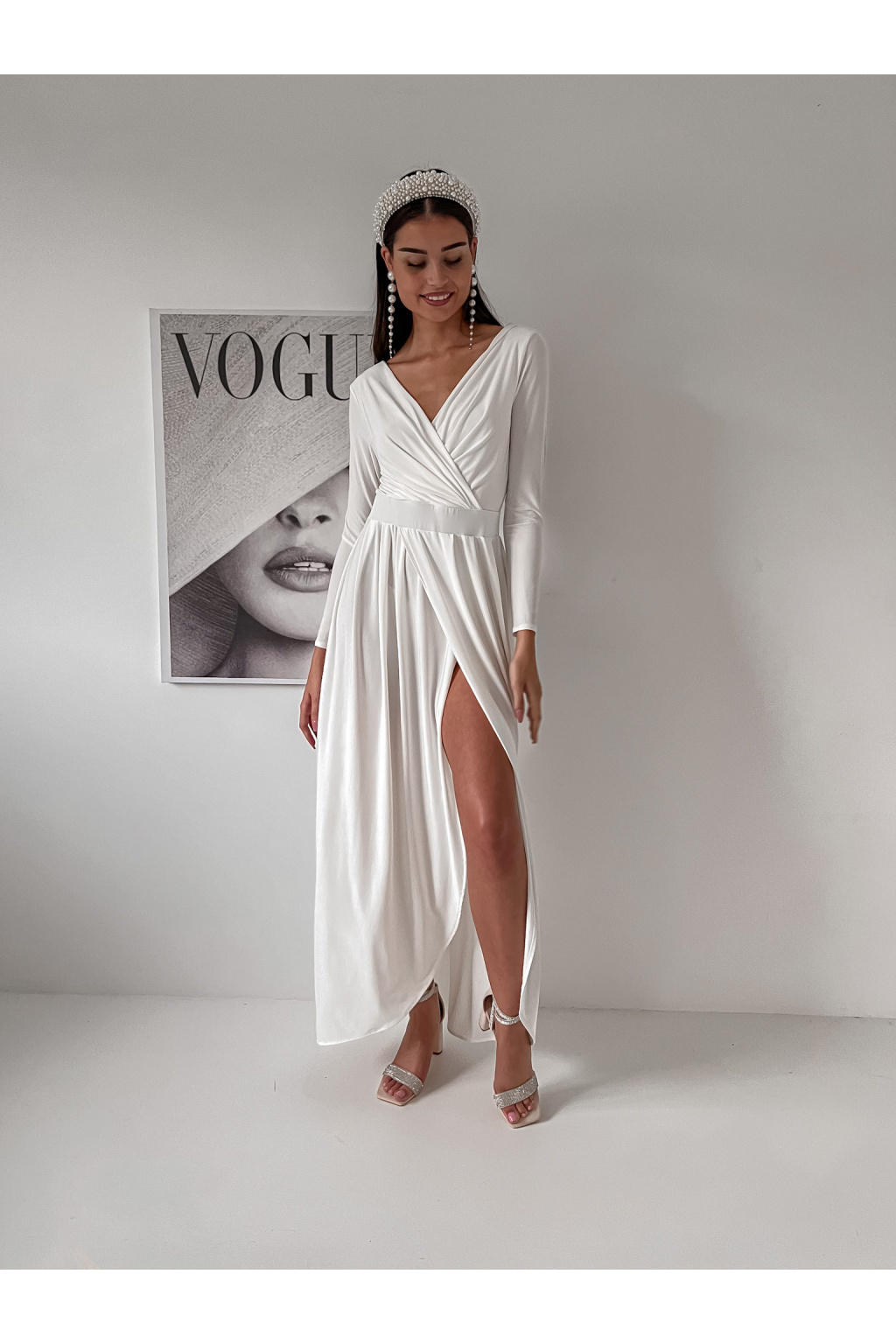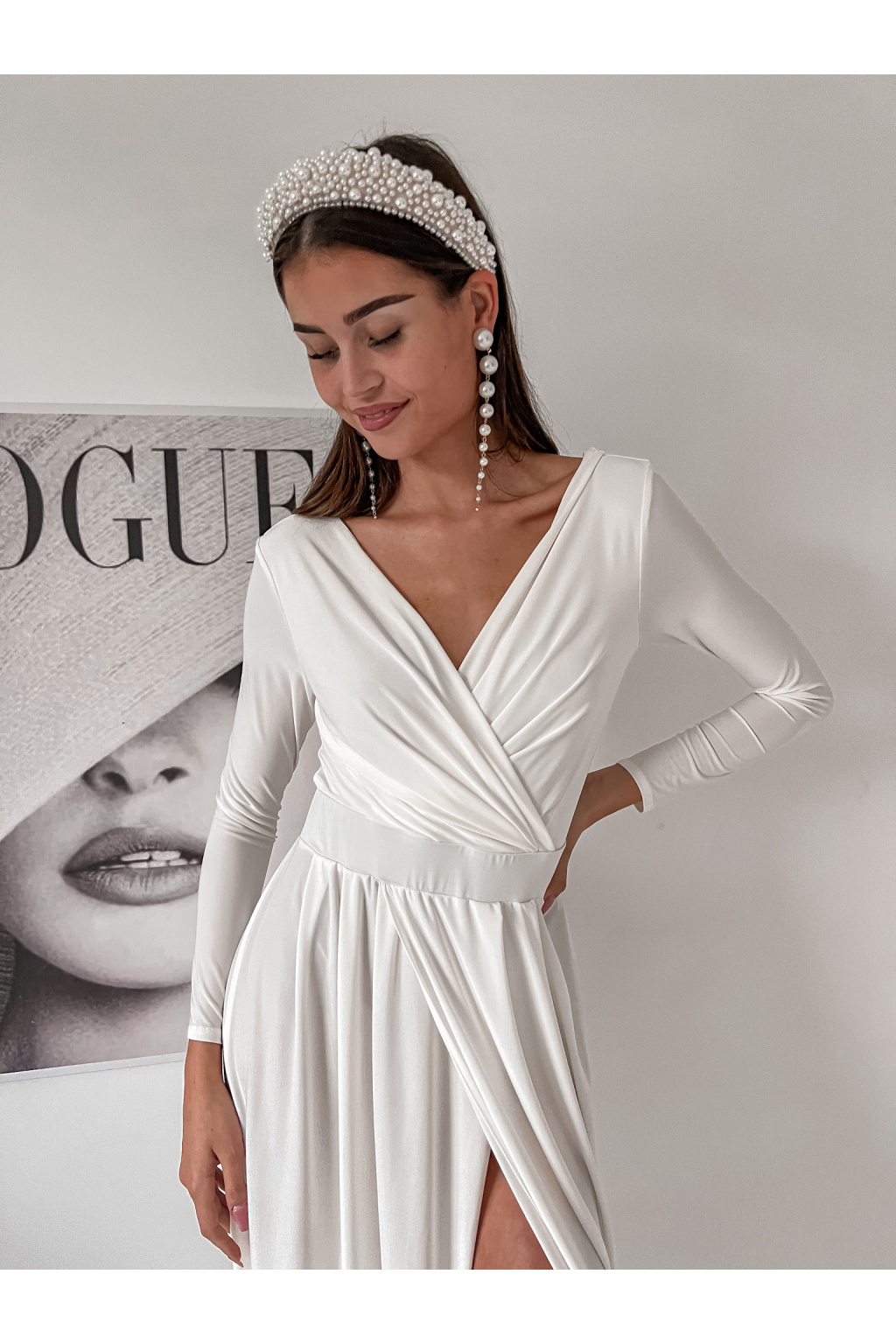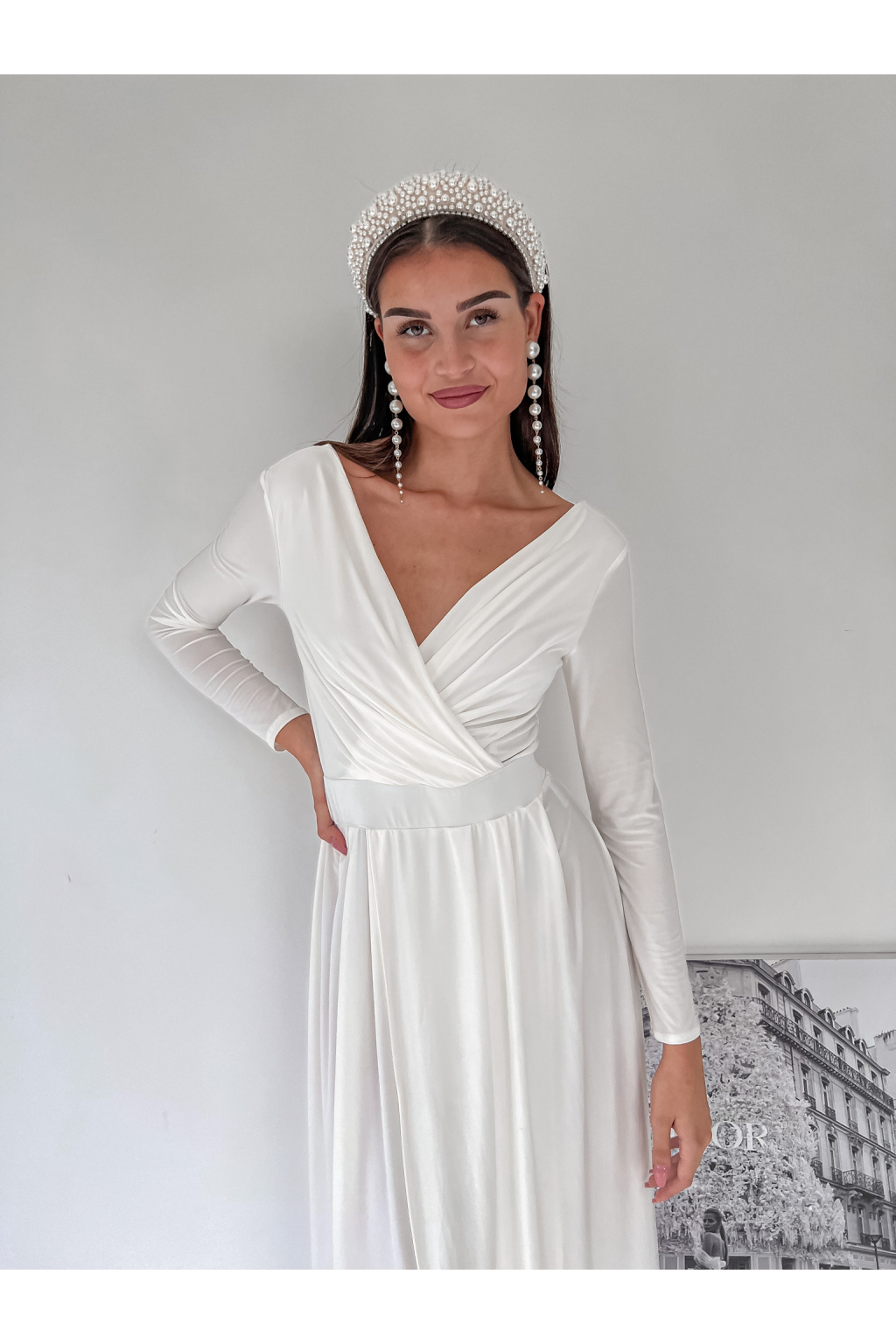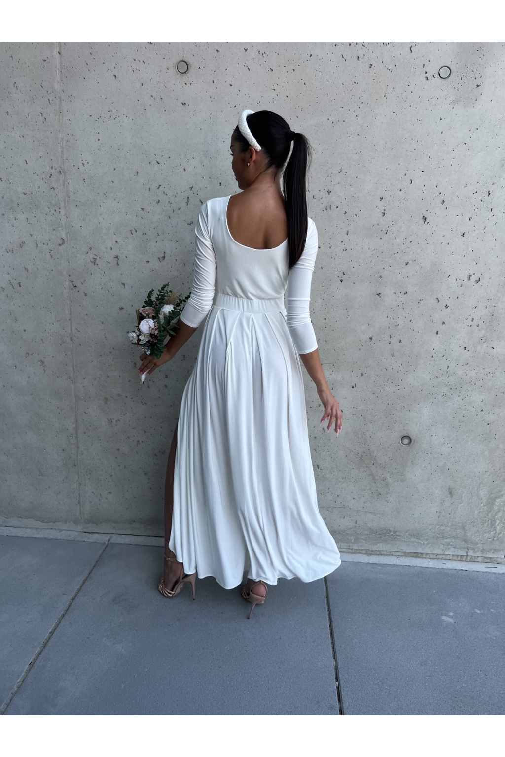 - Dlouhé šaty s dlouhým rukávem v krásné smetanovo-bílé barvě – NAŠE KOLEKCE ŠATŮ!