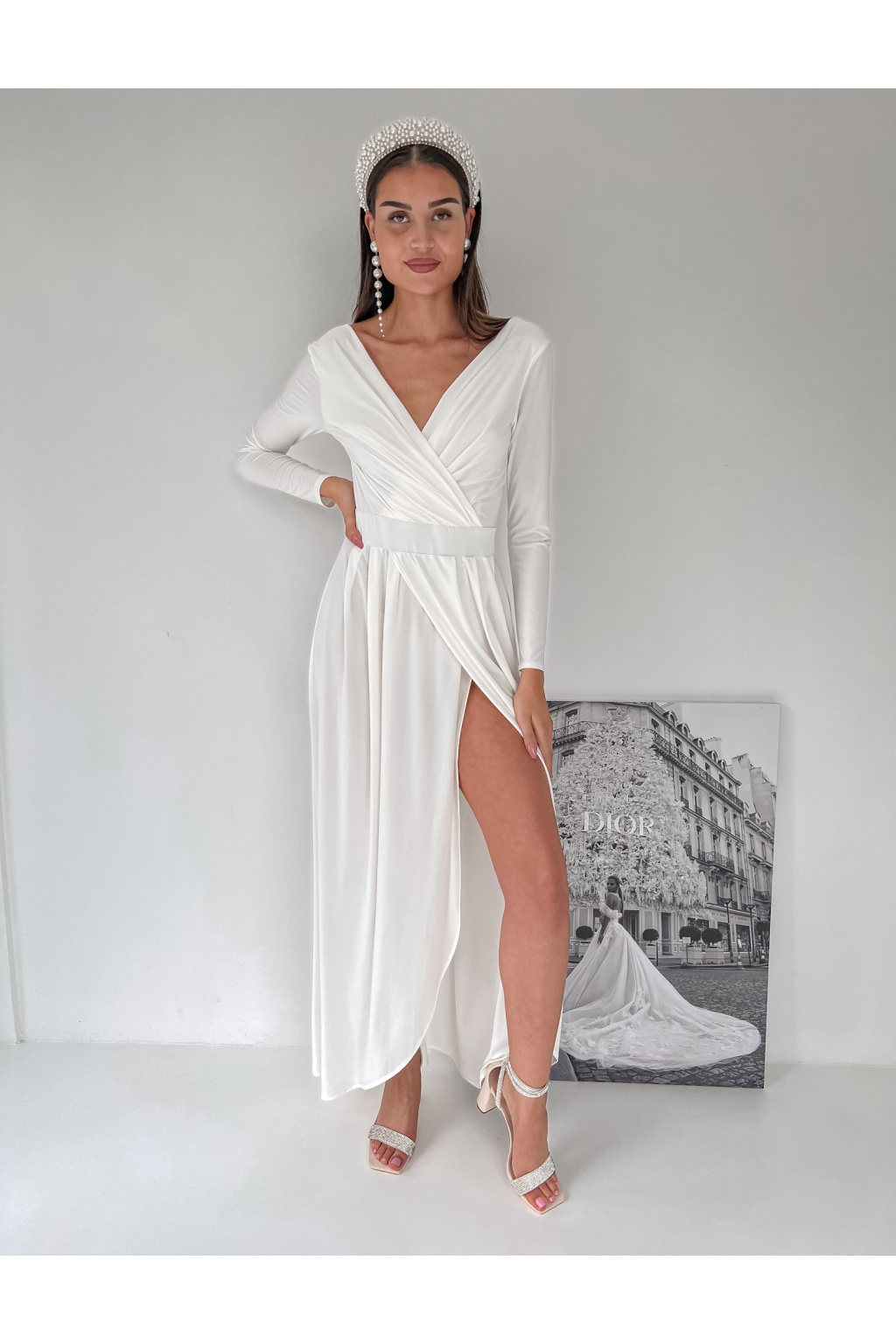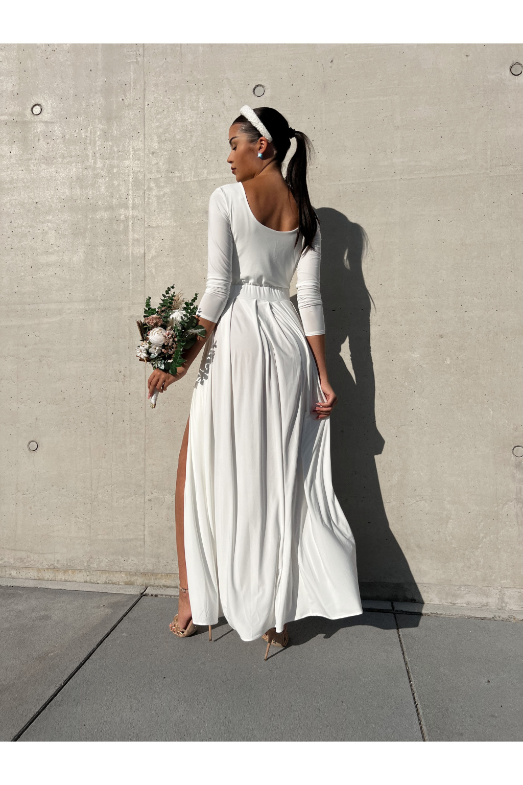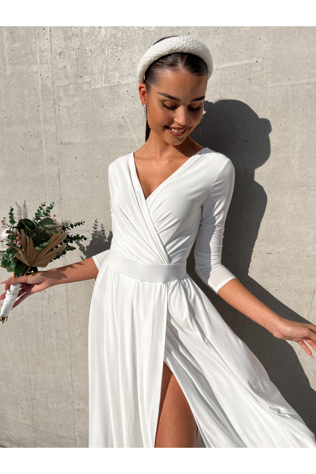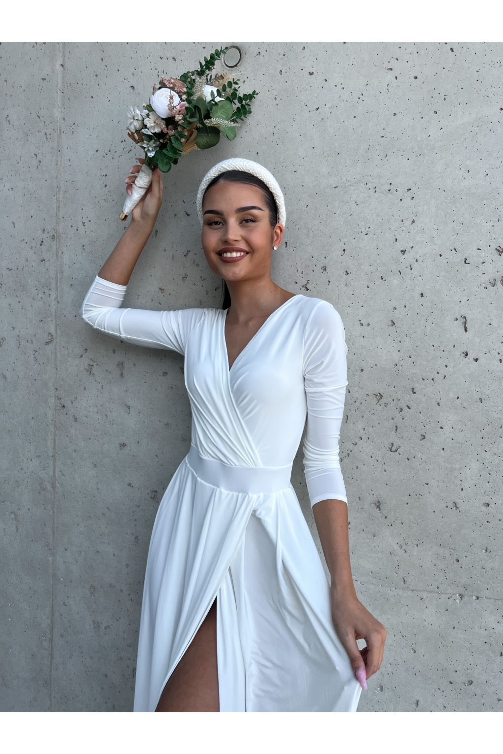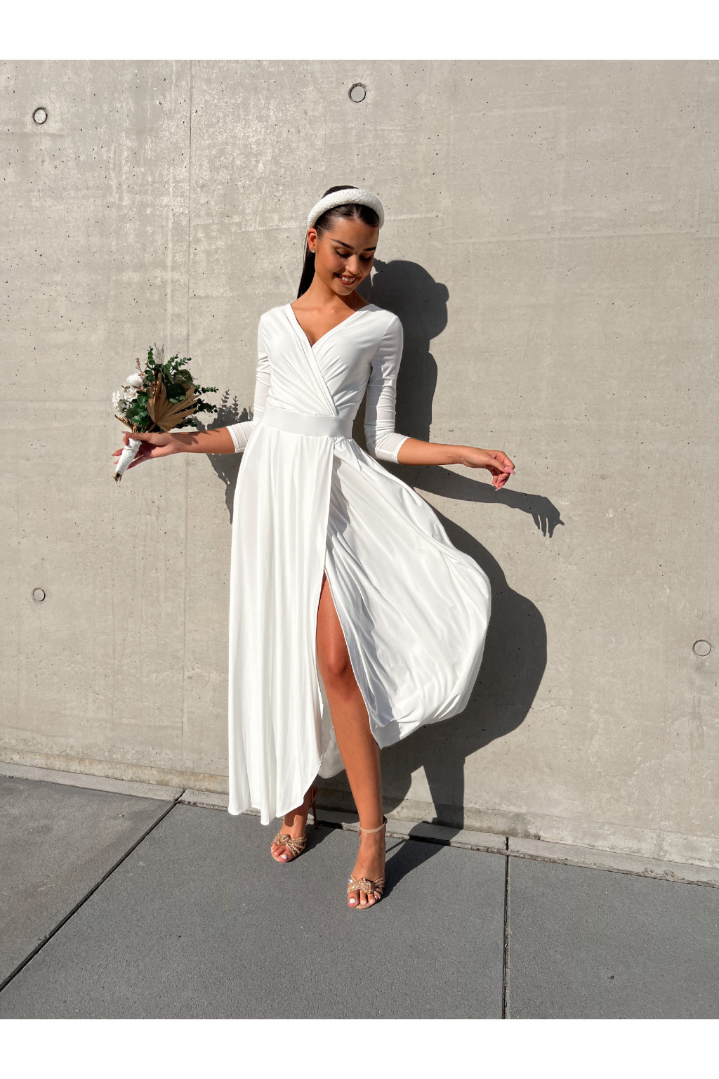 - Dlouhé šaty s dlouhým rukávem v krásné smetanovo-bílé barvě – NAŠE KOLEKCE ŠATŮ!