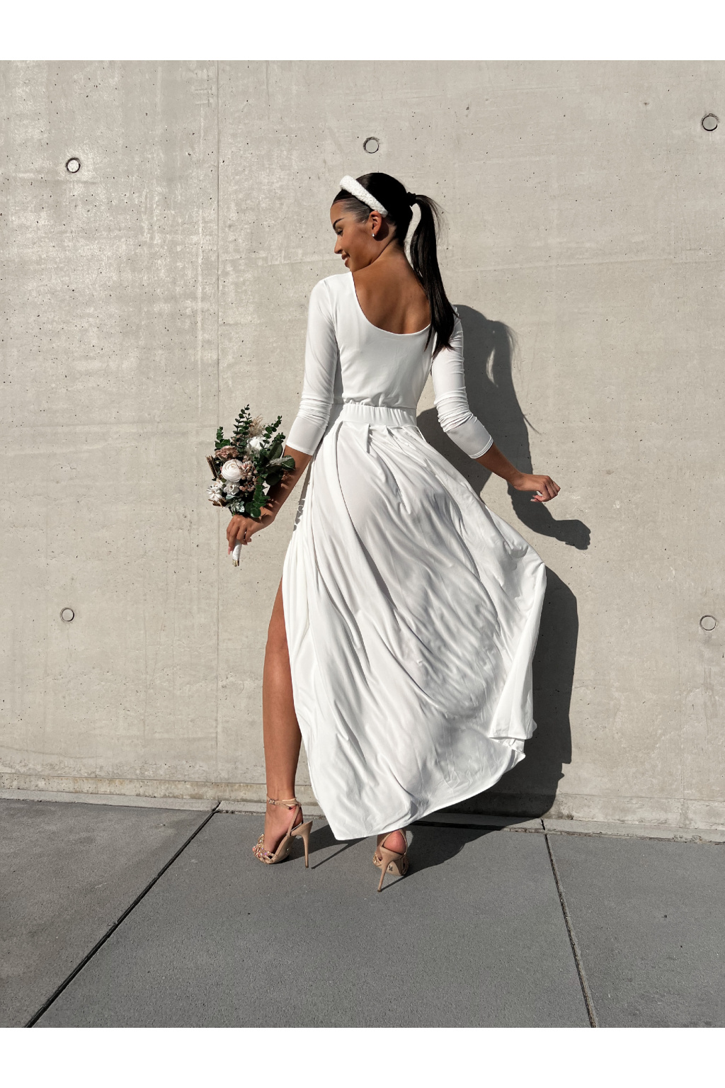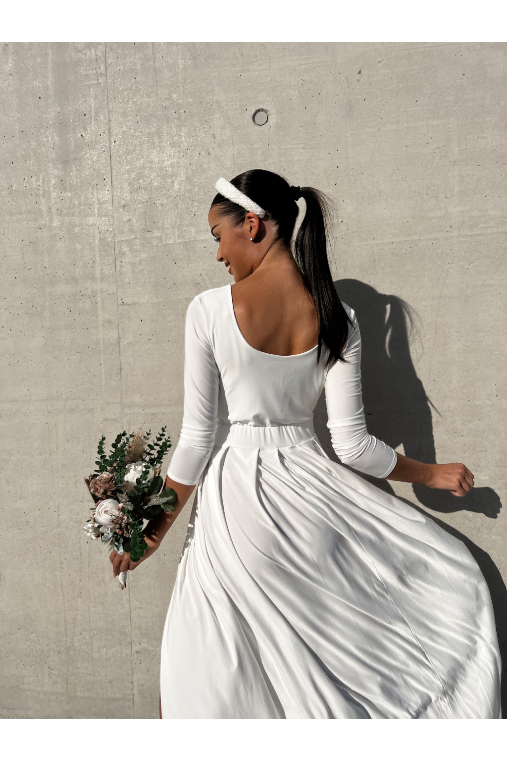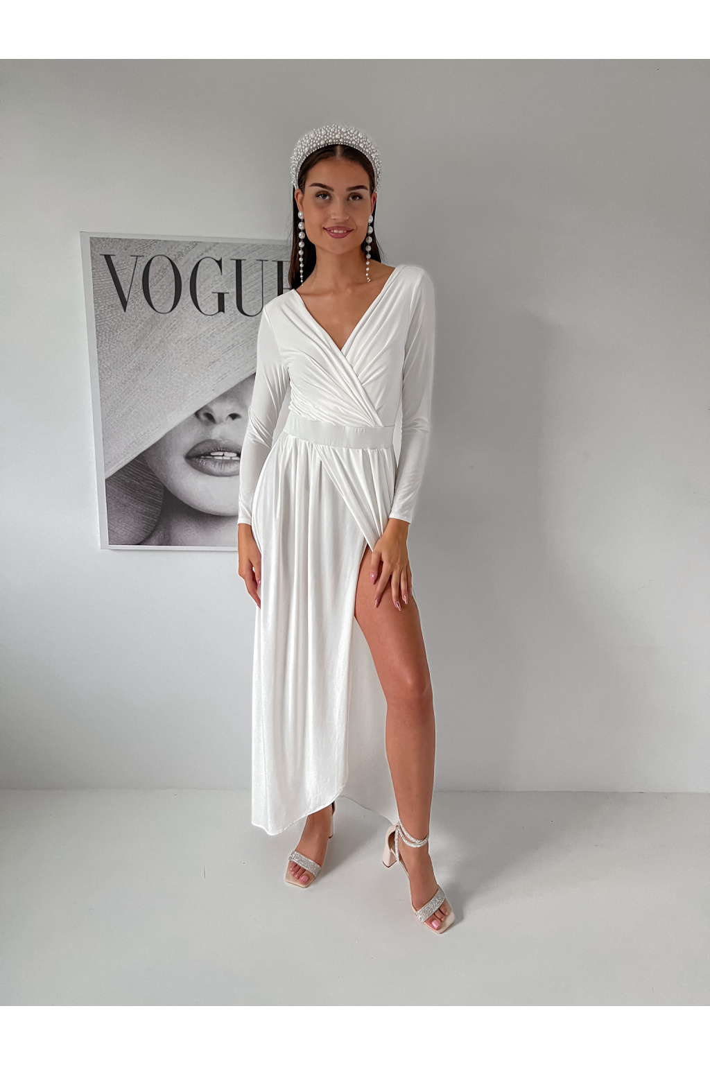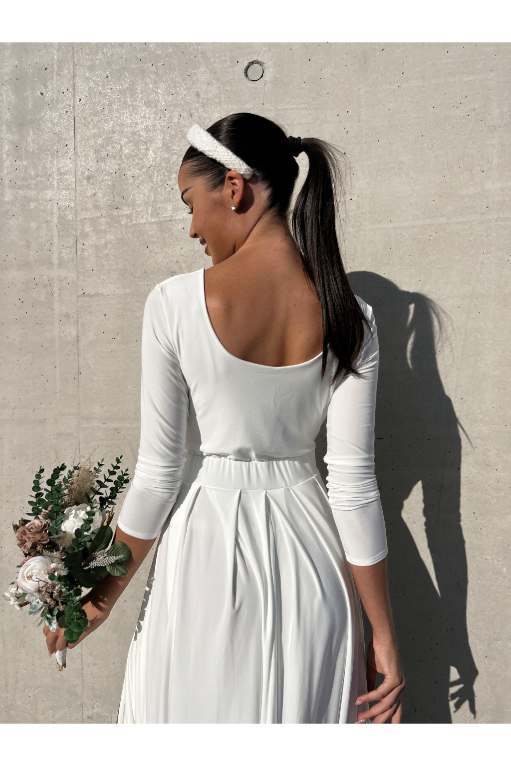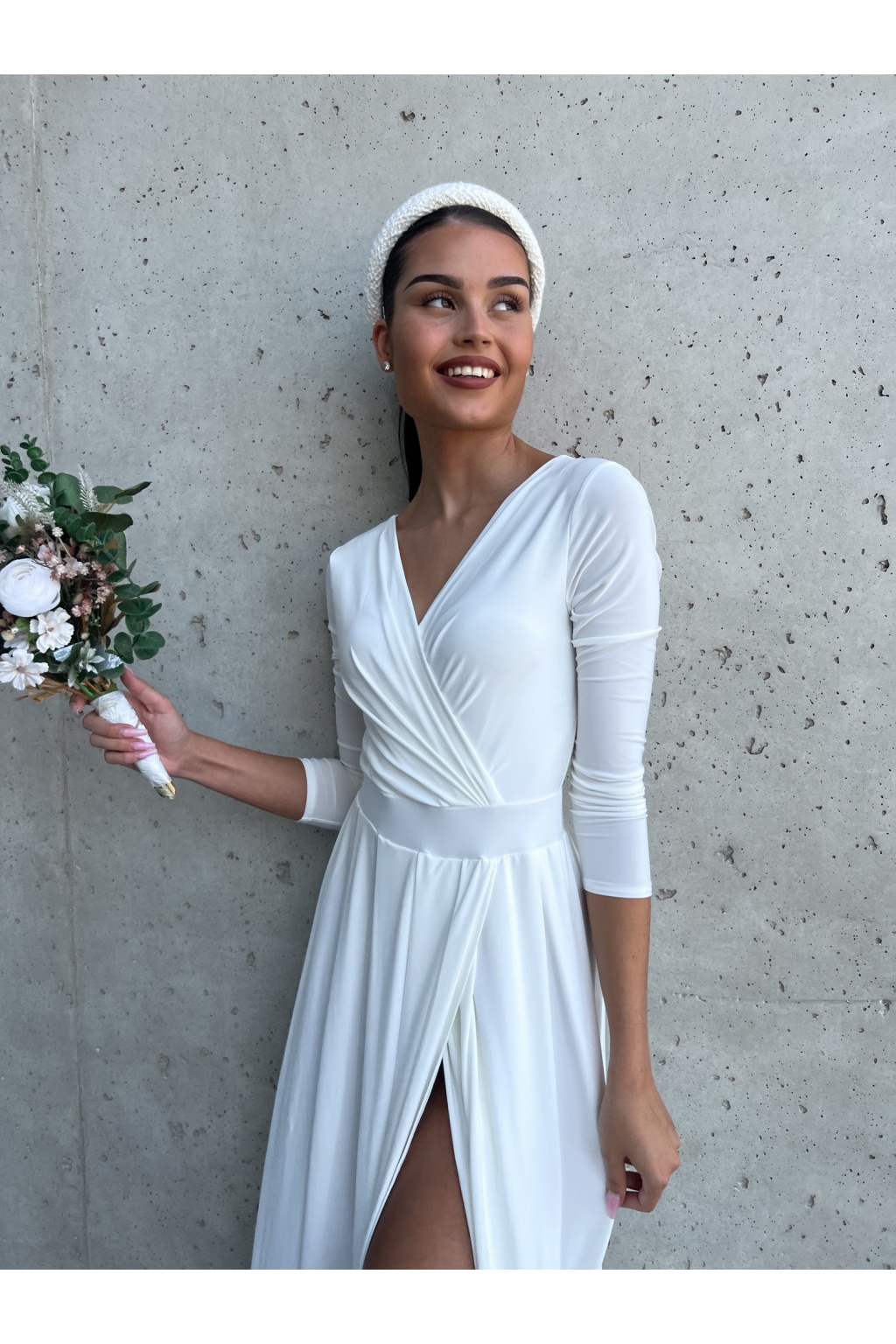 - Dlouhé šaty s dlouhým rukávem v krásné smetanovo-bílé barvě – NAŠE KOLEKCE ŠATŮ!