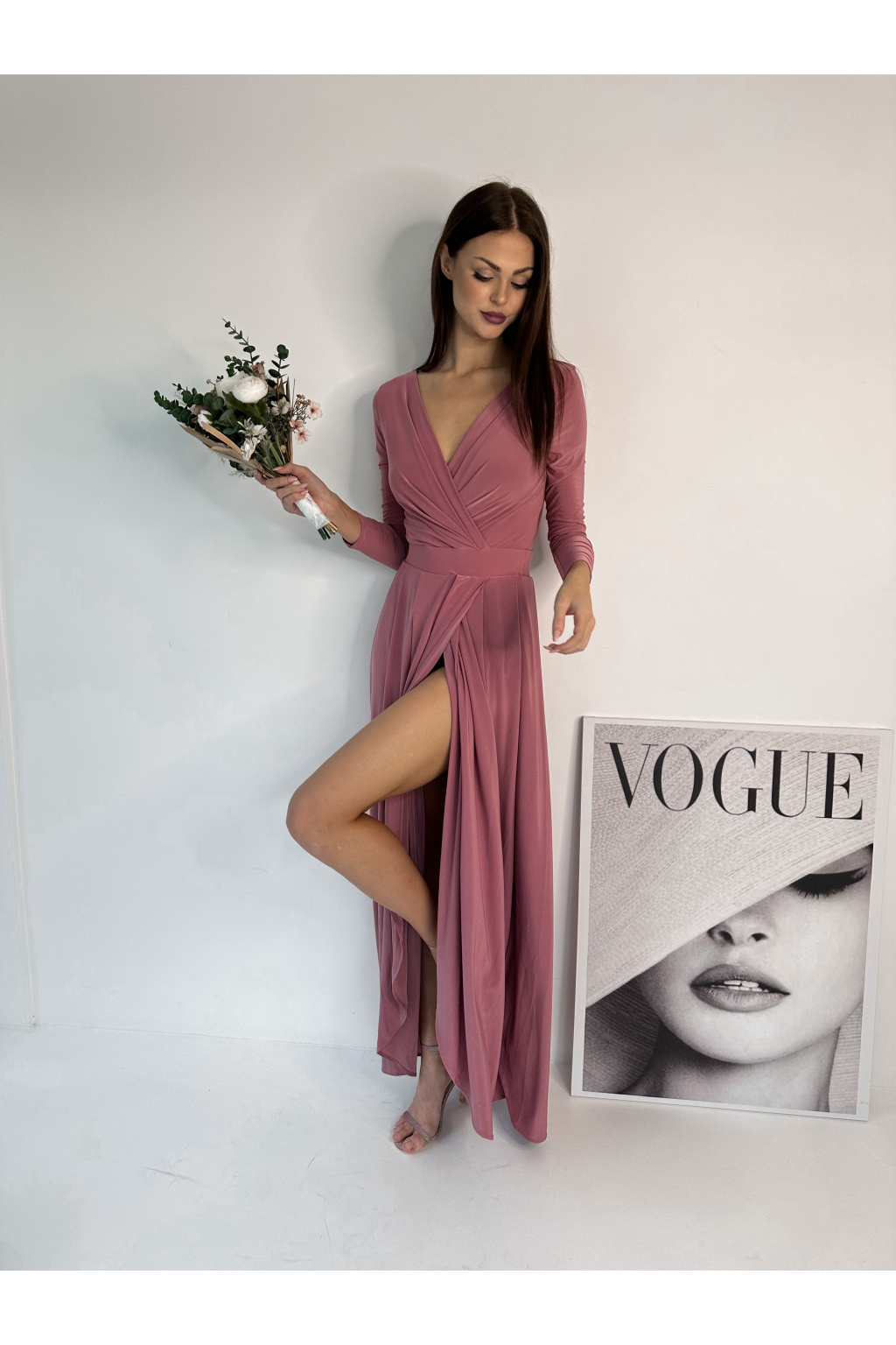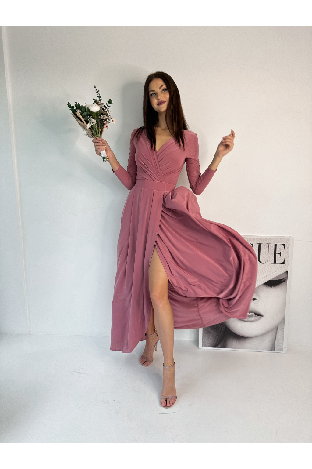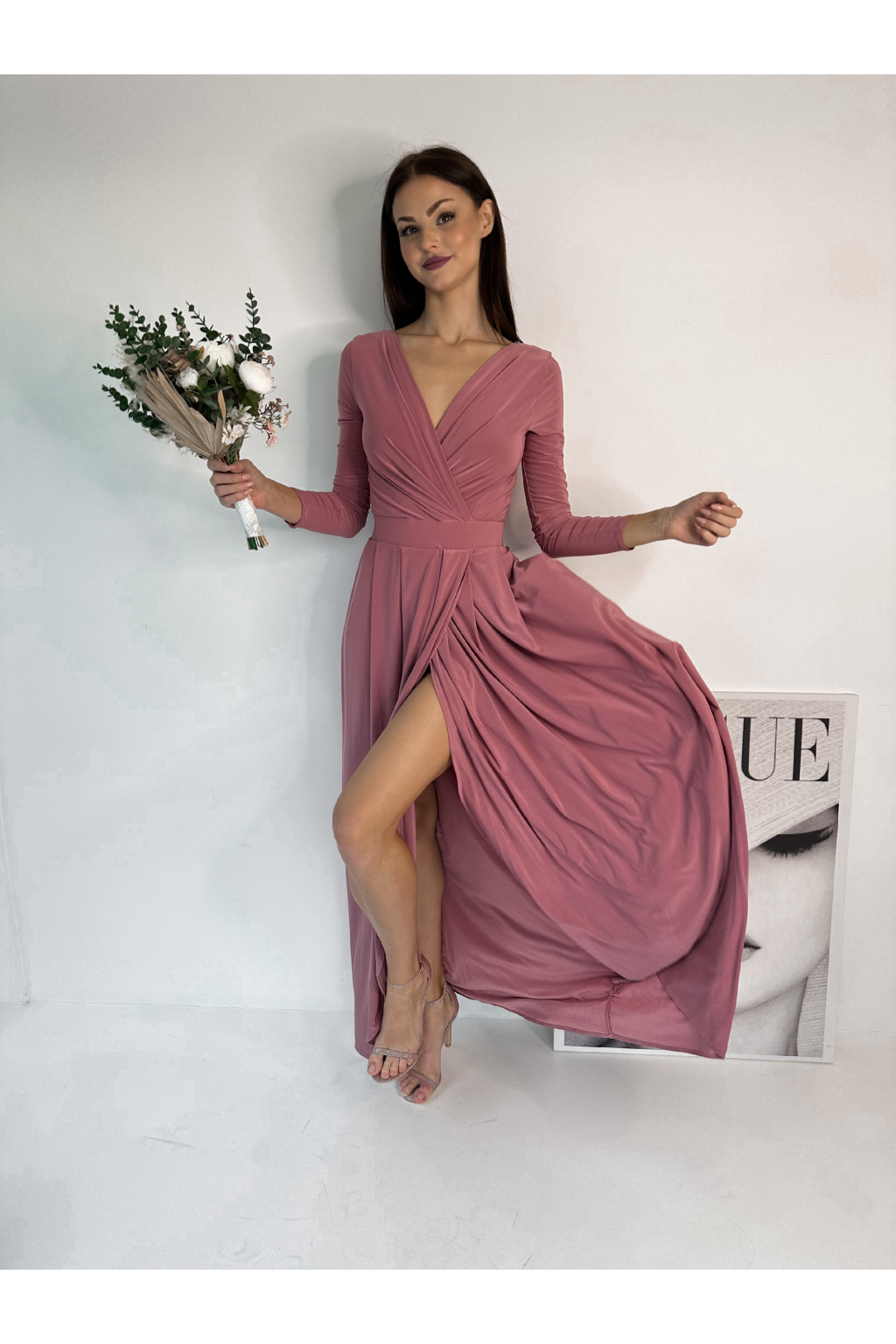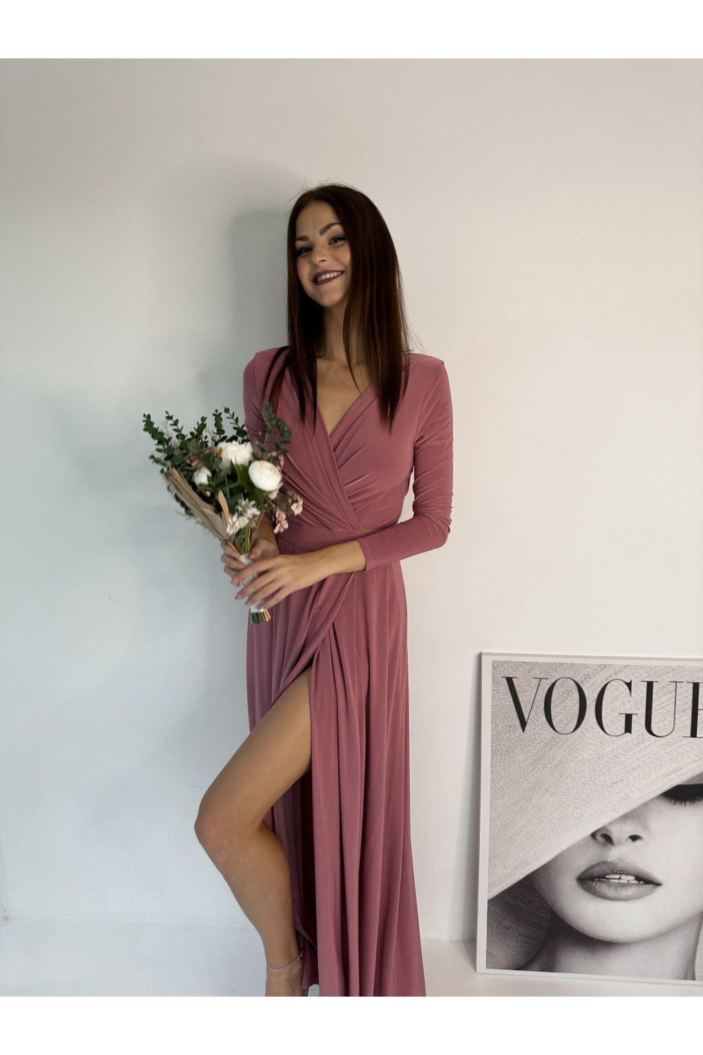 - Dlouhé šaty s dlouhým rukávem v krásné pastelově-růžové barvě – NAŠE KOLEKCE ŠATŮ!