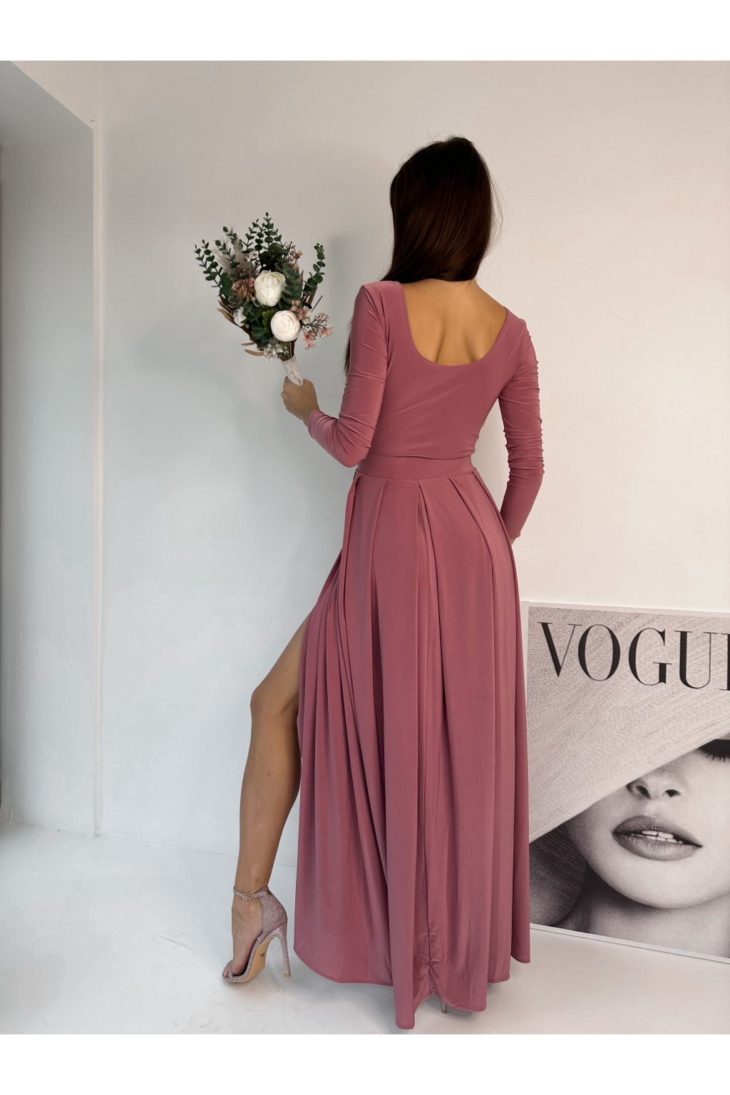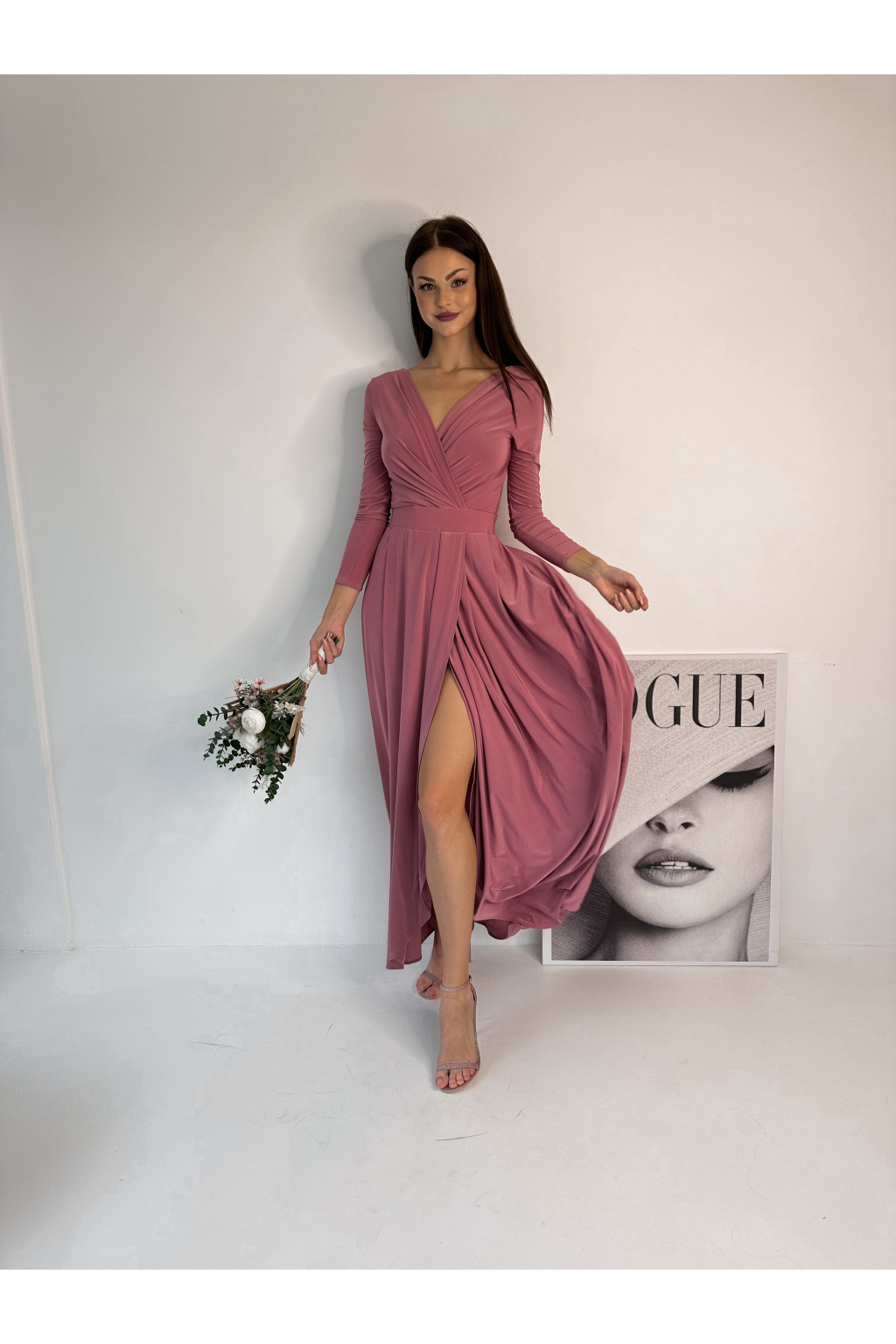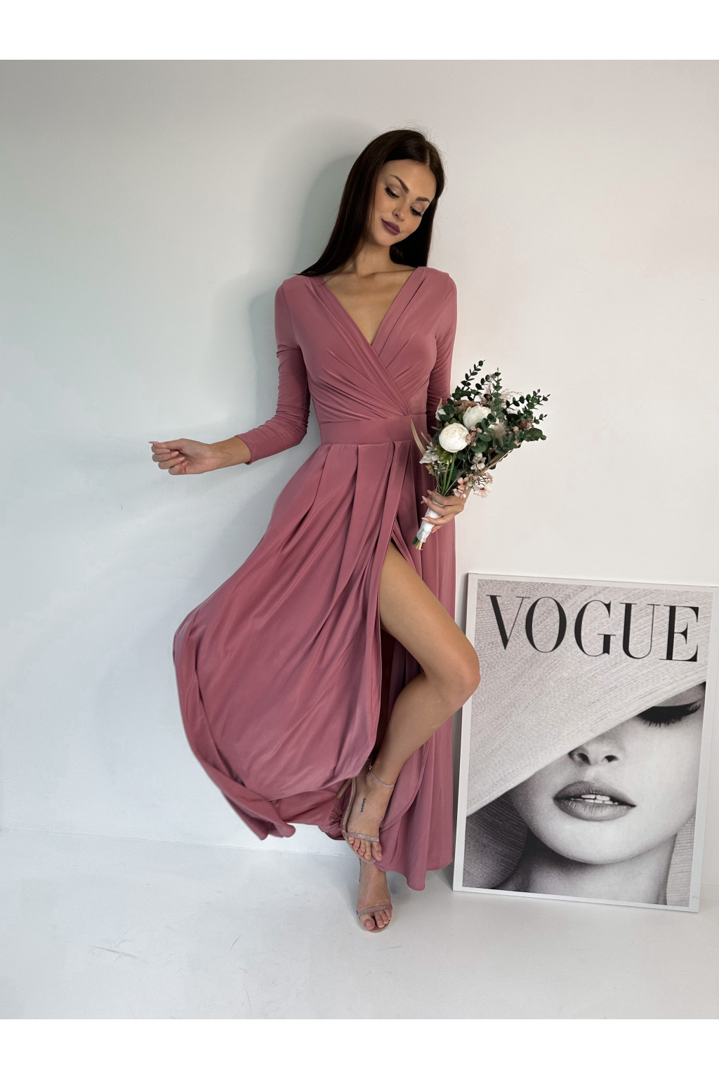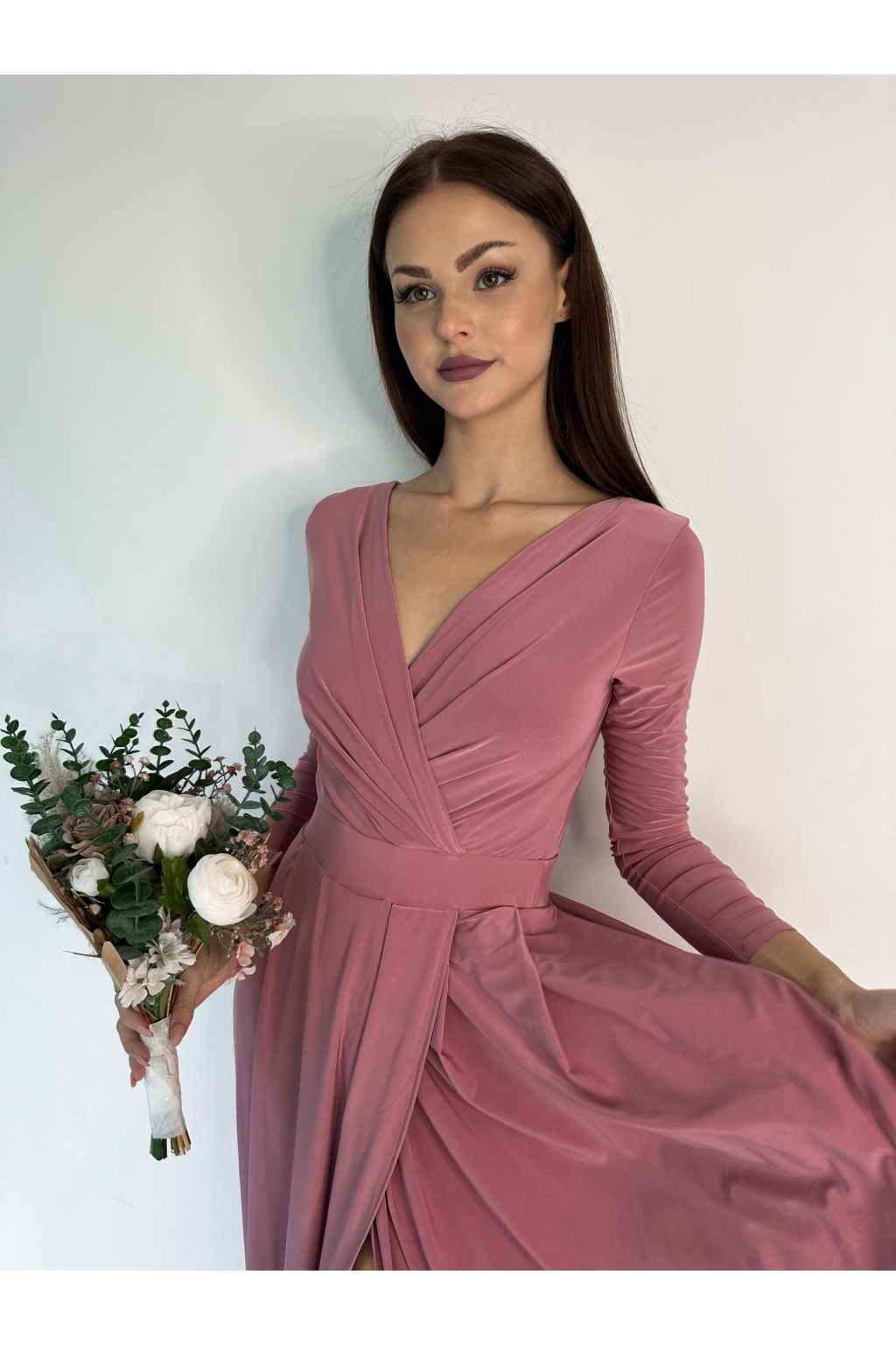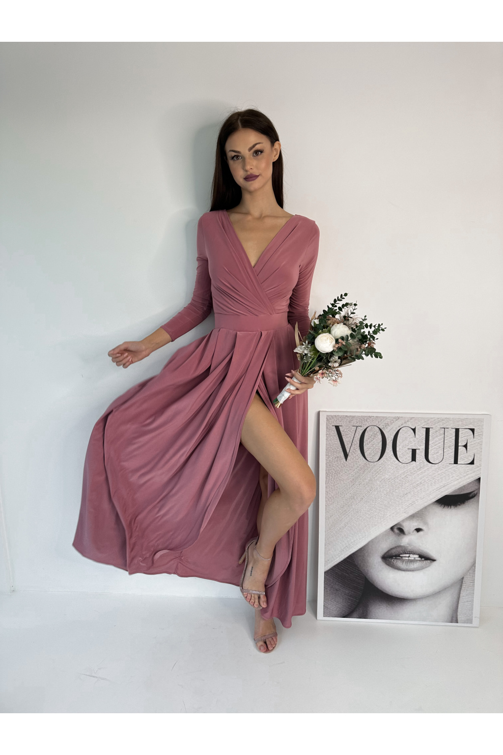 - Dlouhé šaty s dlouhým rukávem v krásné pastelově-růžové barvě – NAŠE KOLEKCE ŠATŮ!