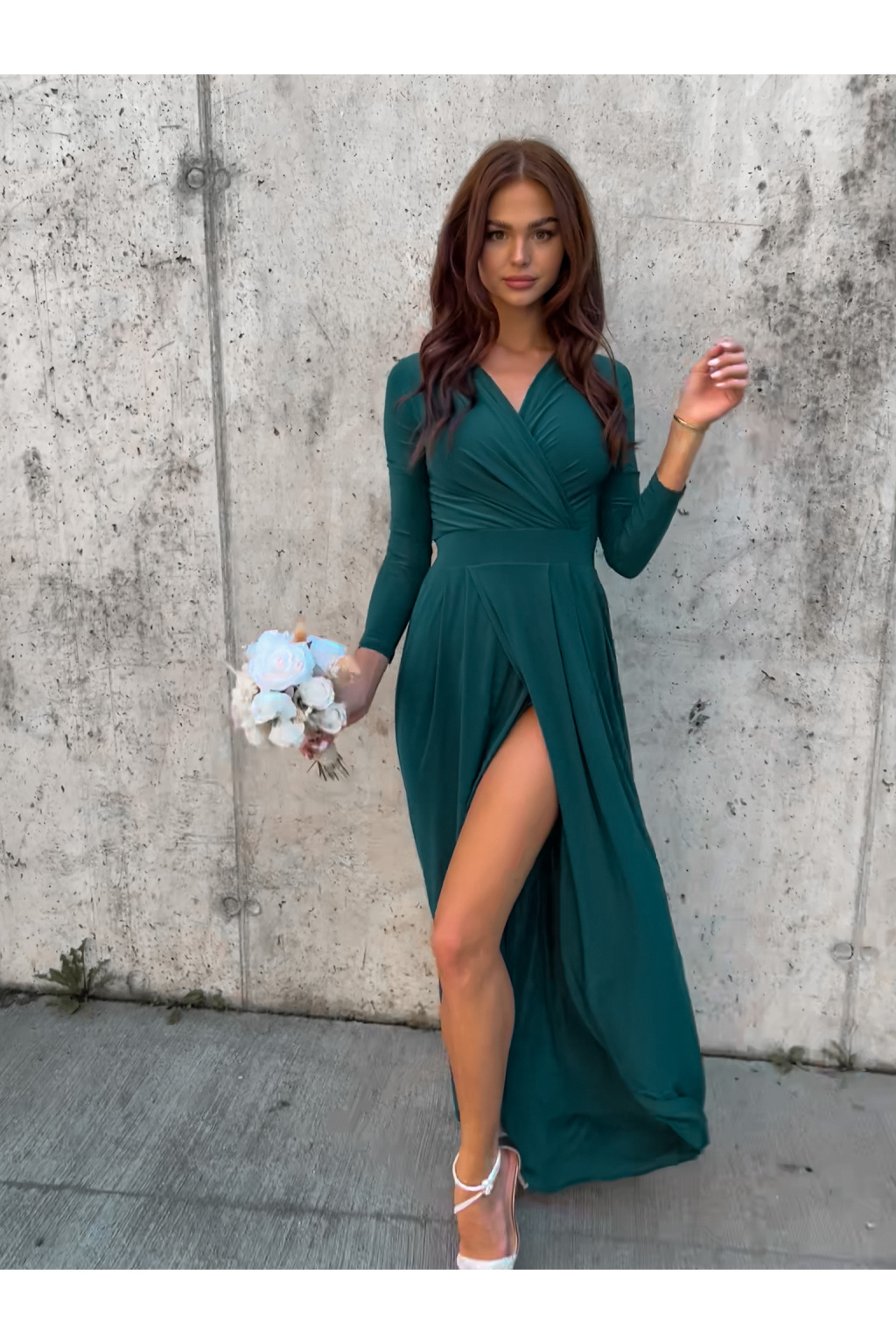- Dlouhé šaty s dlouhým rukávem v krásné smaragdové barvě – NAŠE KOLEKCE ŠATŮ!