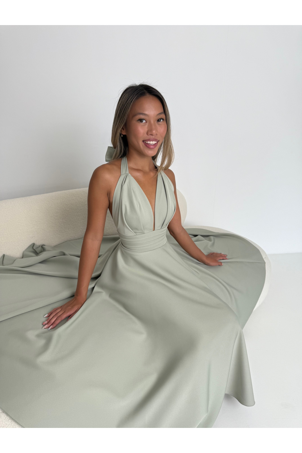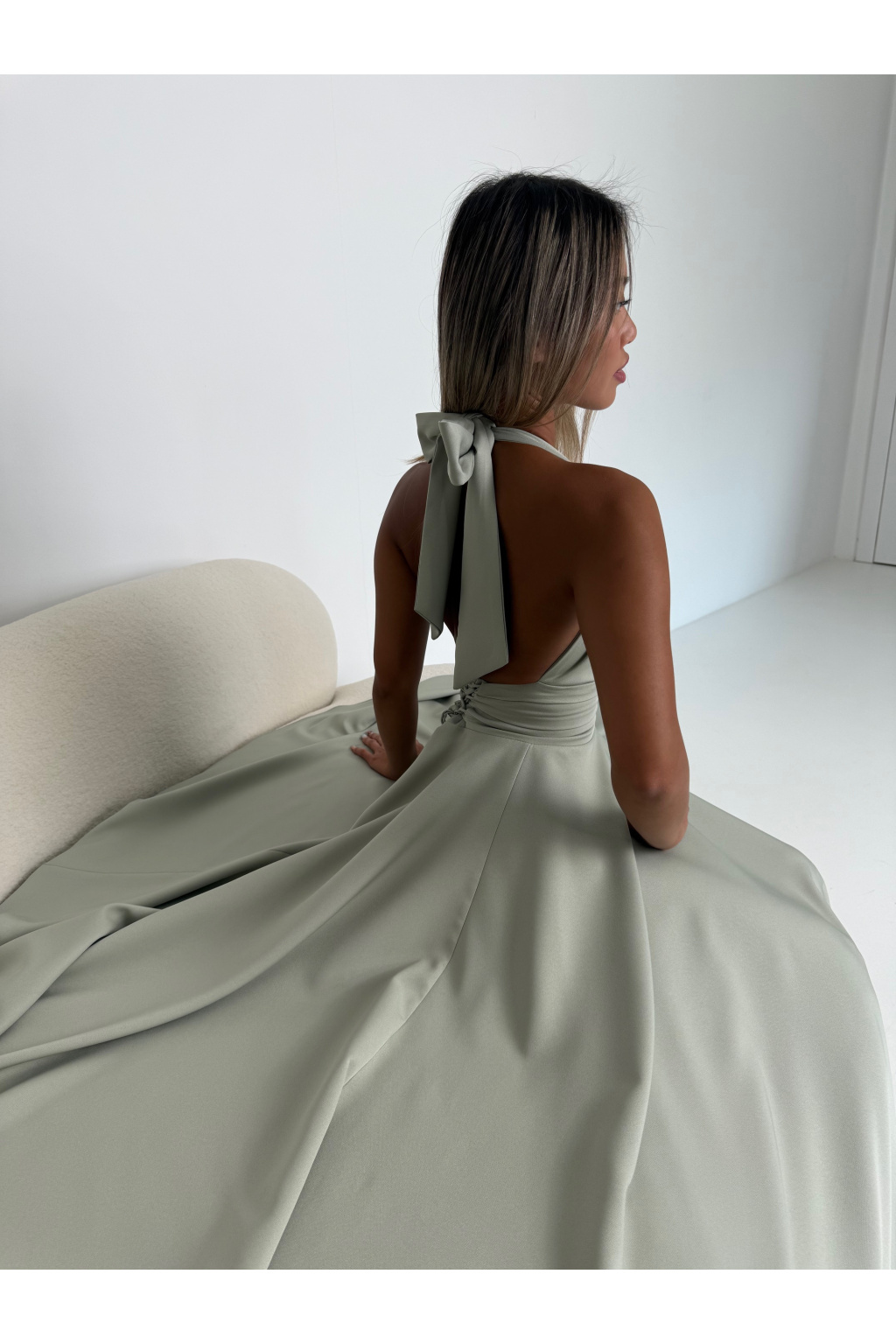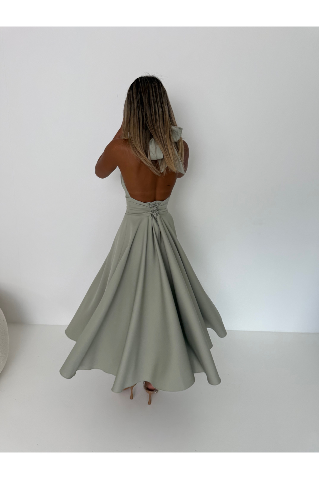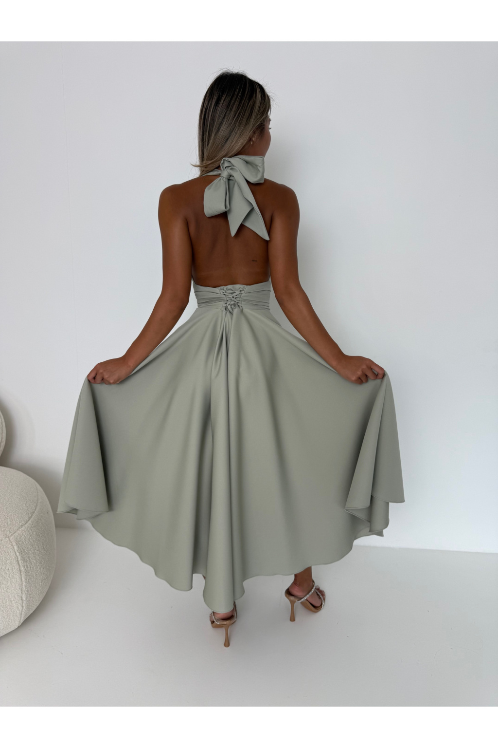 - • Šaty jsou vzadu na vázání. Jak kolem krku - tak v oblasti pasu, abyste si je velikostně přizpůsobily