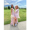- Vzadu jsou šaty překřížené, mají odhalené záda a jeden rozparek