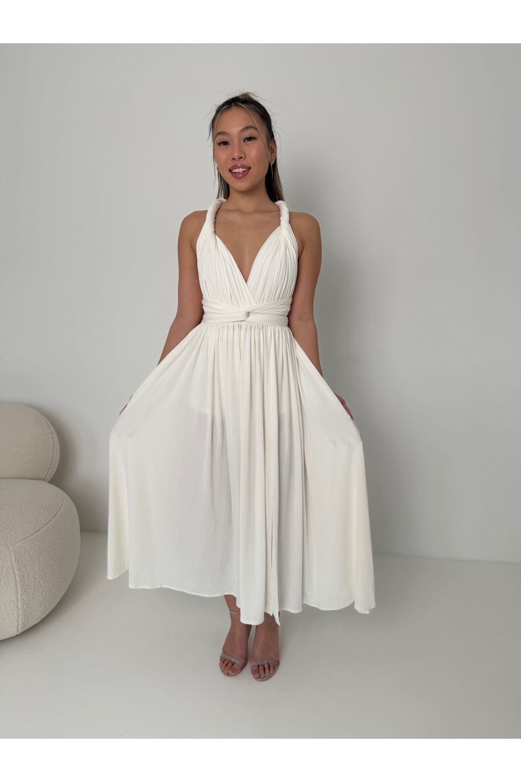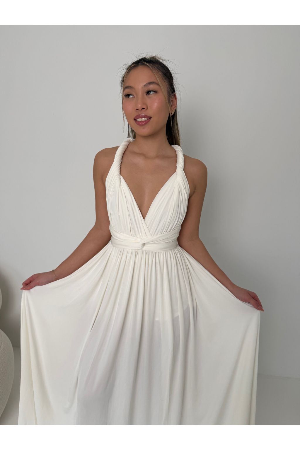 Objevte kouzlo našich vázacích multiway šatů z naší kolekce, navržených pro SQVĚLÉ ženy jako jste vy! Tyto jedinečné a vzdušné šaty vám umožní variabilitu v nošení – můžete je uvázat podle svého vkusu a nálady. Ať už je budete nosit na svatbě, večírku nebo při jiné příležitosti, vždy v nich zazáříte!